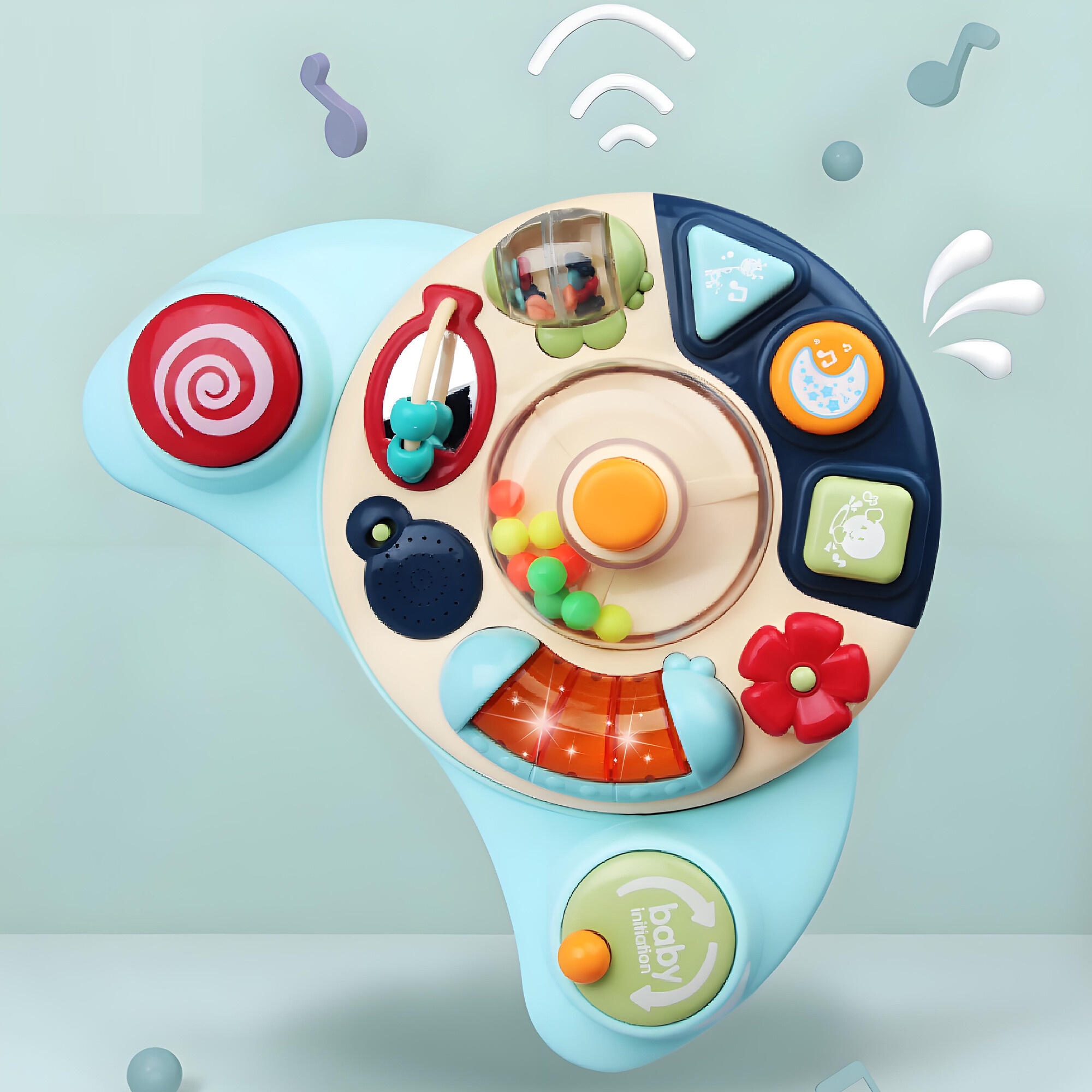 Každé tlačítko a prvek na stolečku je navržen tak, aby přinášel radost a zároveň učil. Děti se mohou těšit na - chrastítko, zrcátko, korálky, otočné květinkové tlačítko, tlačítka která vydávají zvuky - zvířátek, hudebních nástrojů a melodiemi s ukolébavkami.