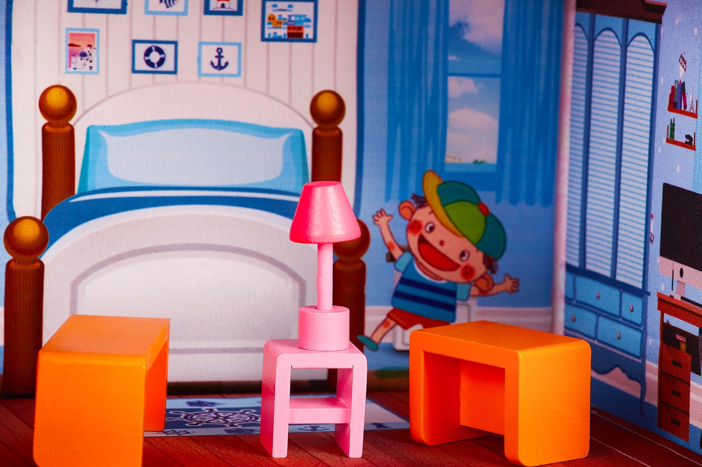 Každý pokoj je vybaven ručně vyráběným dřevěným nábytkem, který můžou děti libovolně přemisťovat.