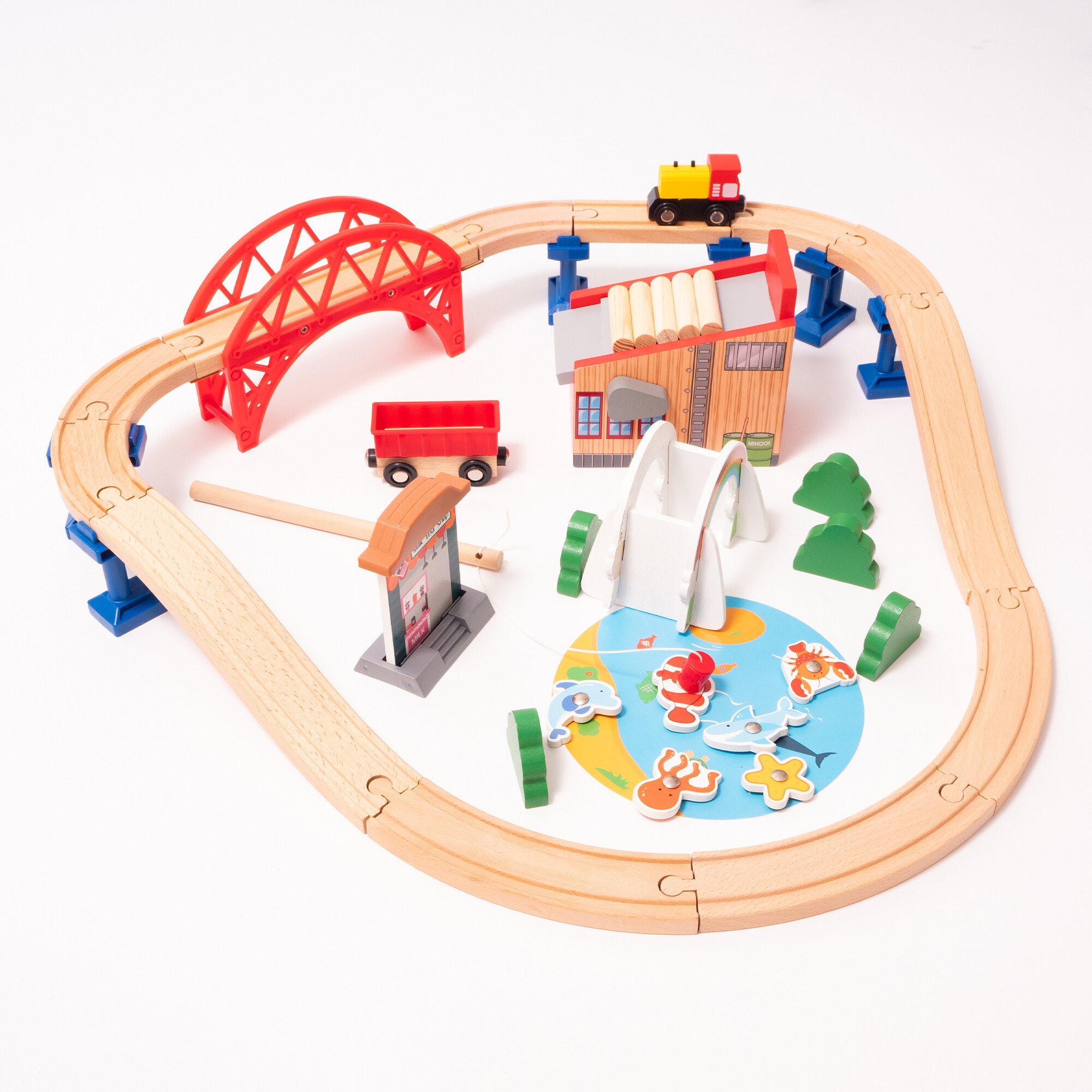 Vláčkodráha je dostatečně velká na to, aby si s ní mohlo hrát více dětí najednou. Dřevěná vláčkodráha je ideální dárek pro každou příležitost.