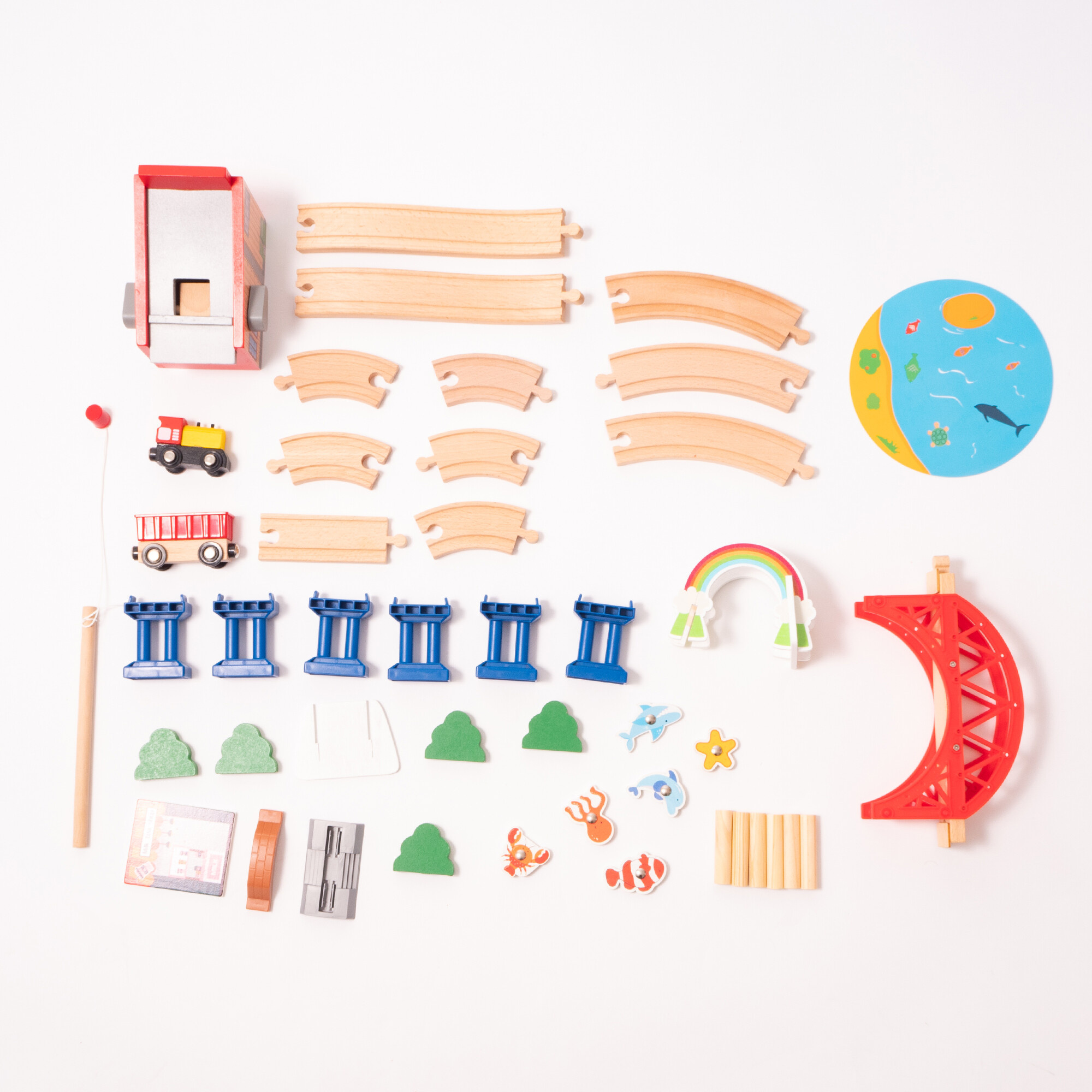 Dřevěná vláčkodráha s bohatým příslušenstvím od firmy Aga4Kids. Celý popis