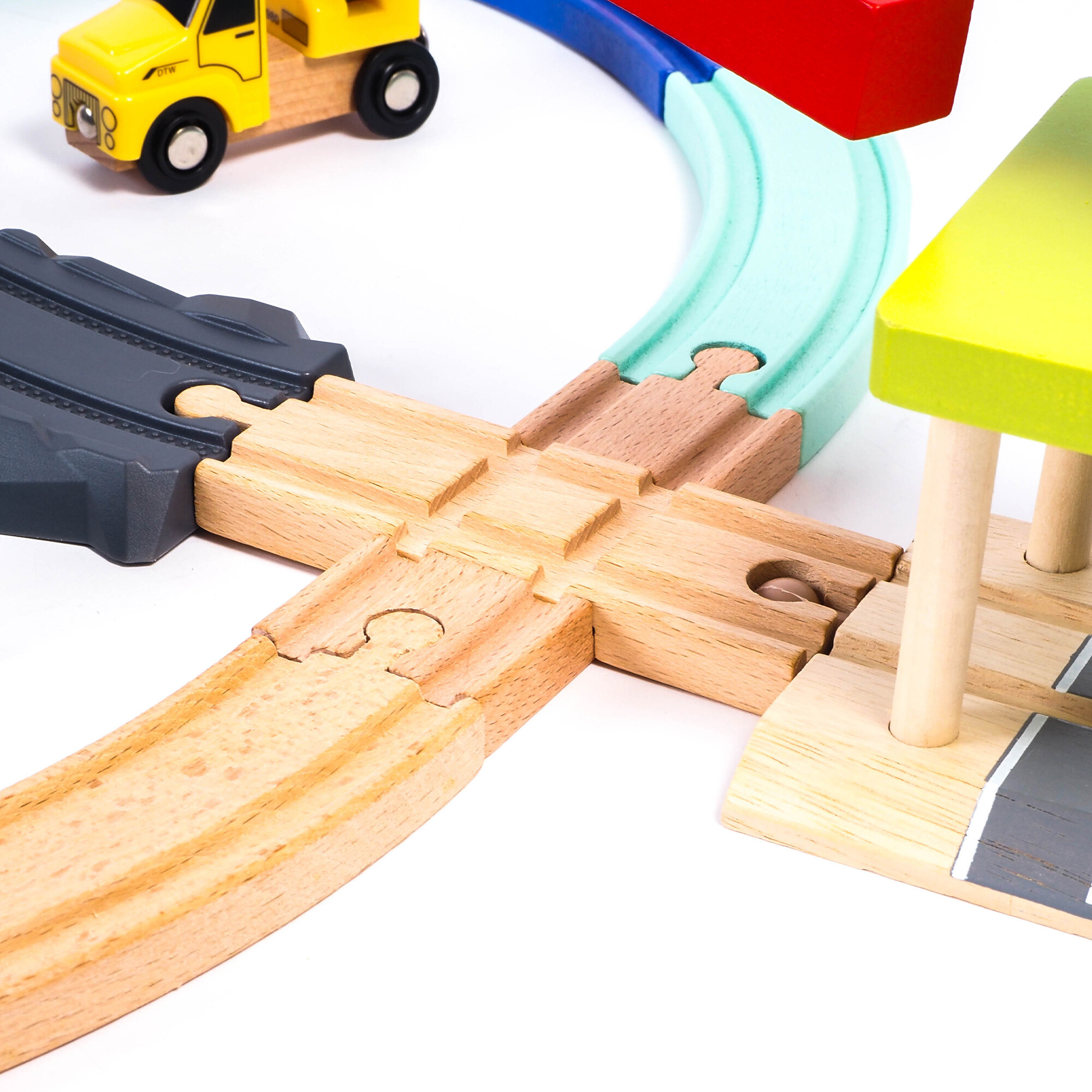 Vláčkodráha je dostatečně velká na to, aby si s ní mohlo hrát více dětí najednou. Dřevěná vláčkodráha je ideální dárek pro každou příležitost.