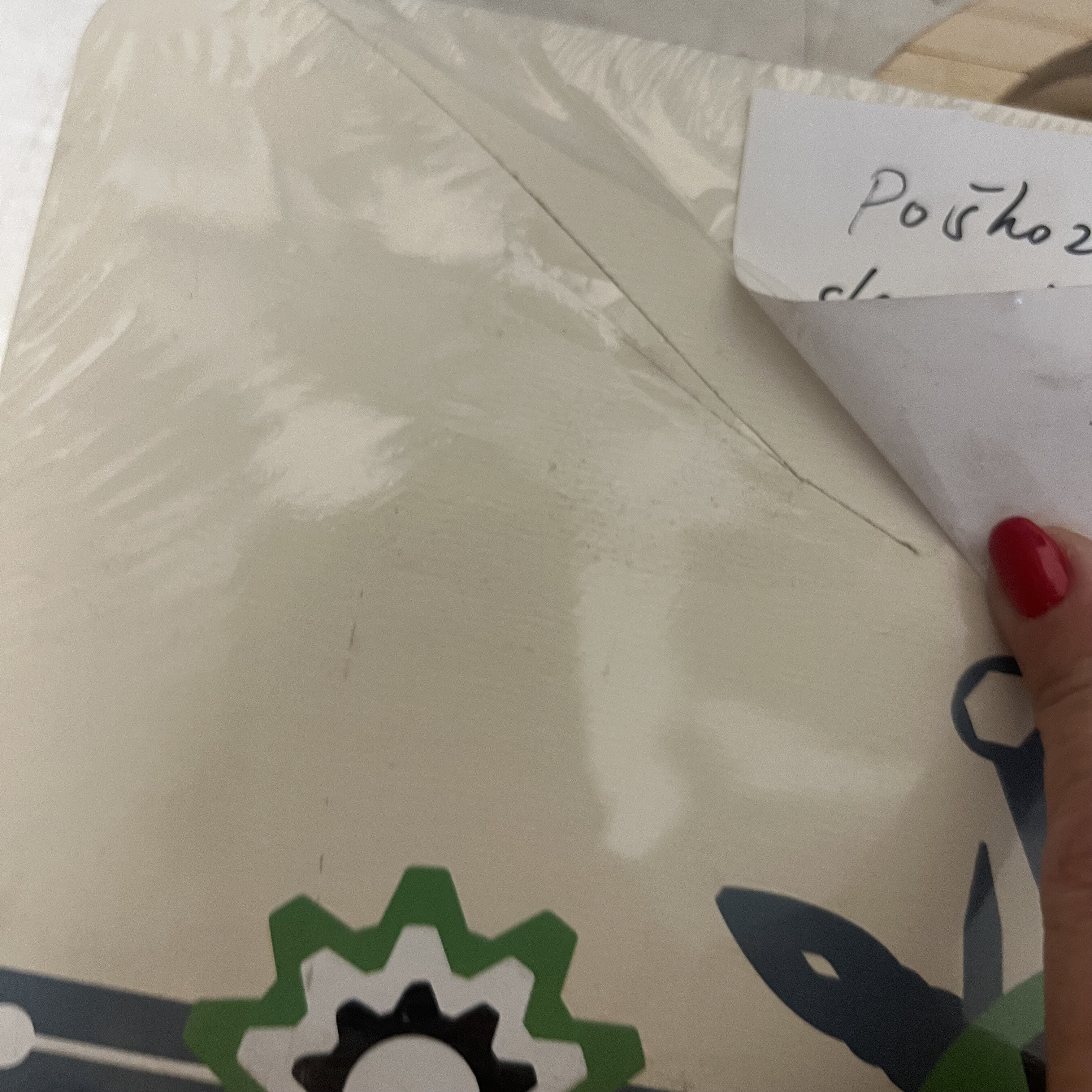Tento kus je poškrábaný, má naražený roh a původně zlomenou rukojeť, která je nyní slepená. Je uložen v ochranné fólii a částečně ušpiněný. Vady jsou převážně vzhledové a nemají vliv na možnost používat kufřík k uložení nářadí.
