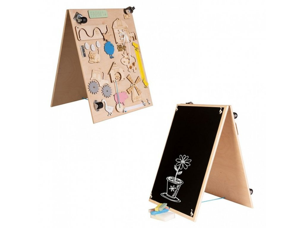 Druhá černá strana tabule je určena kreslení křídou. Tabule jsou orientovány na rozvoj jemné motoriky, podporu trpělivosti a získávání dovedností dítěte. Zabezpečte svým dětem tuto atraktivní tabuli a dopřejte jim tak chvíle plné zábavy a vzdělávání!