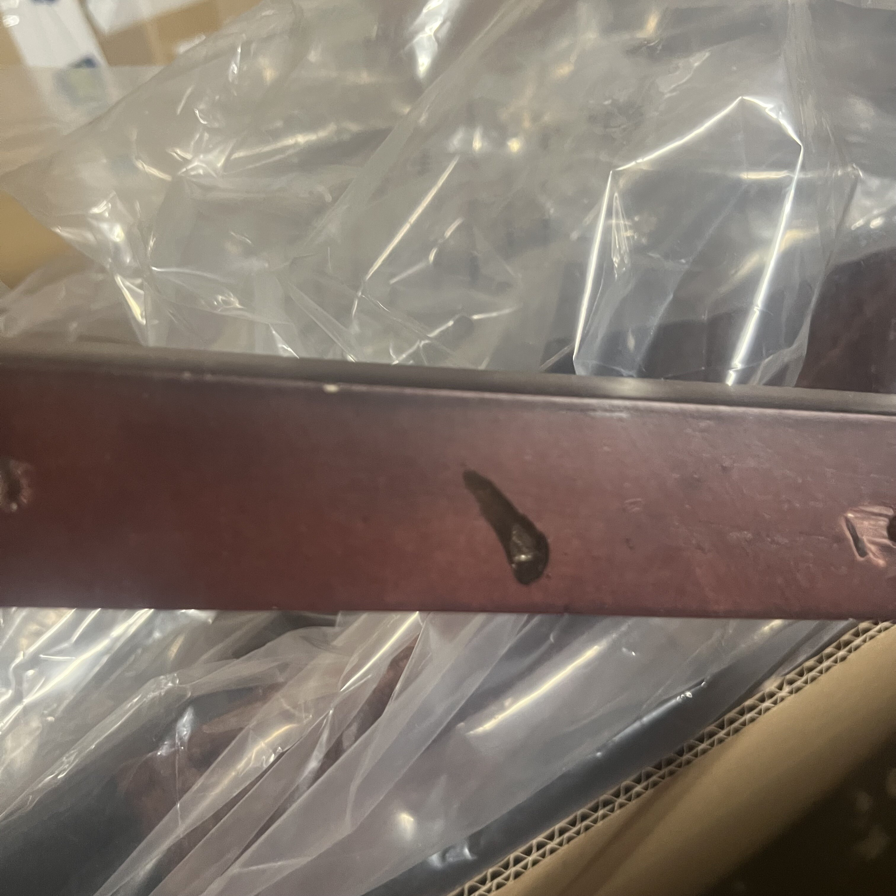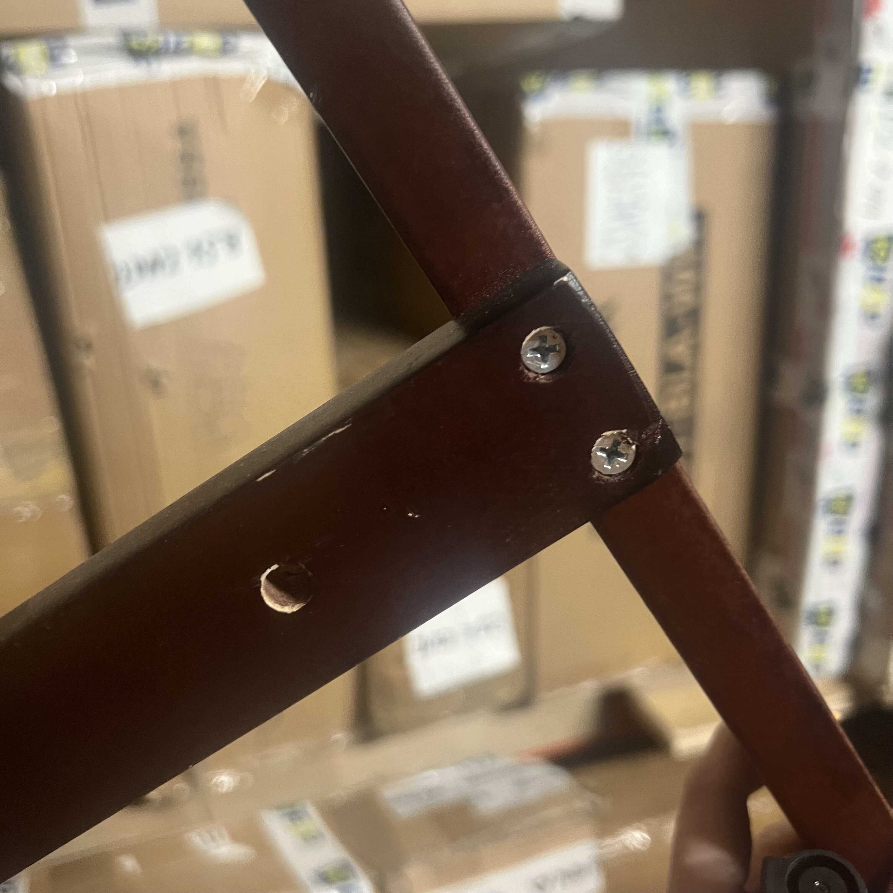 Šrouby jsou rezavé a dřevěná houpací část je poškozená - viz fotografie.