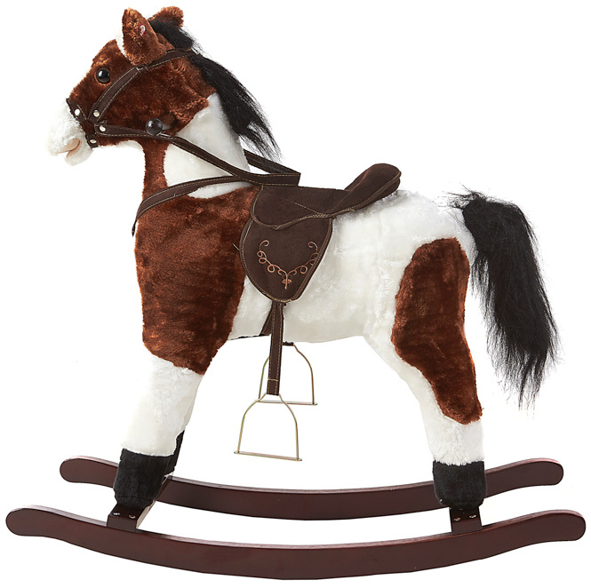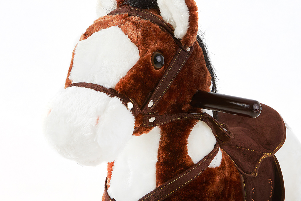 - Hračka má sedlo s třmeny, uzdu a dřevěné rukojeti