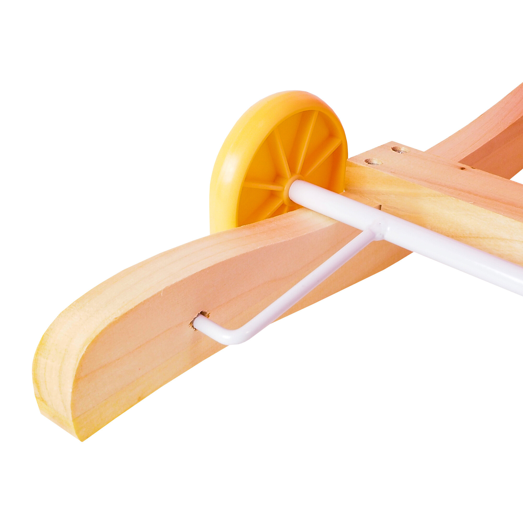 Pevné dřevěné lišty a rukojeti pomáhají dítěti udržet rovnováhu. Překlopením jednoduchého mechanismu na lištách vysunete kolečka, čímž ve vteřině změníte houpací hračku v jezdícího sloníka.