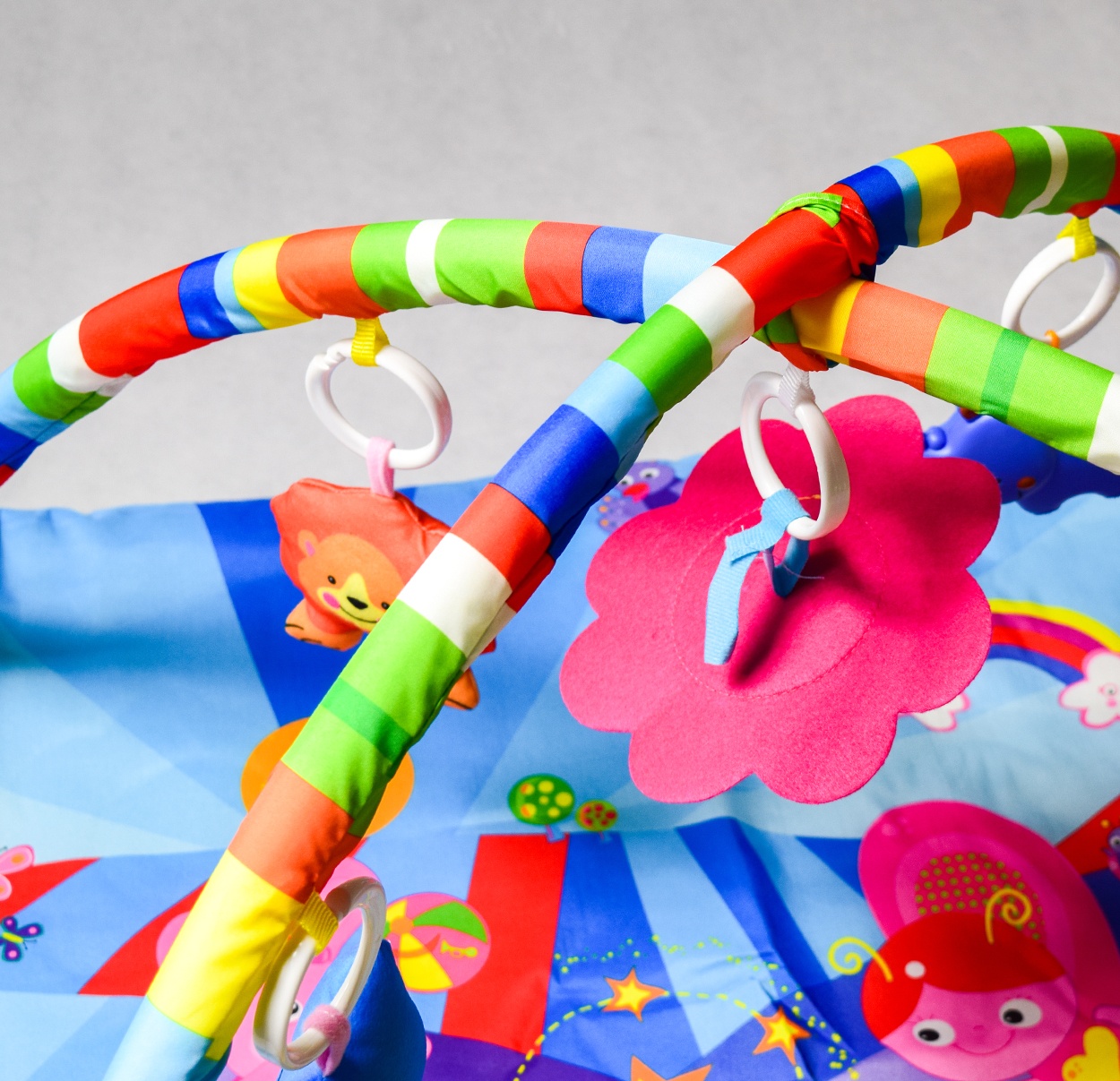 Hrací deka s hrazdičkou, v krásných zářivých barvách.