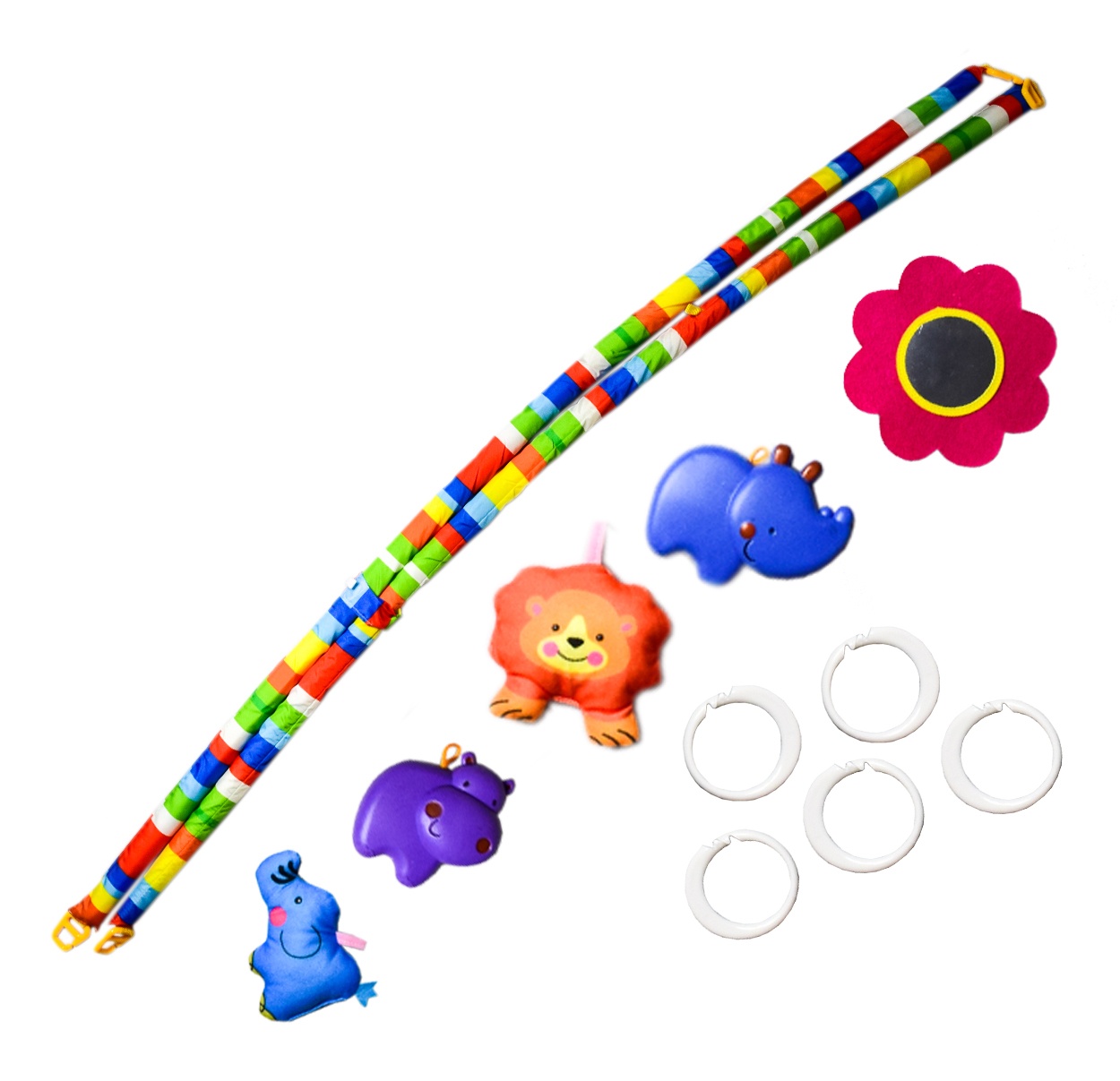 - Hračky lze z hrazdičky snadno odepnout a používat samostatně
