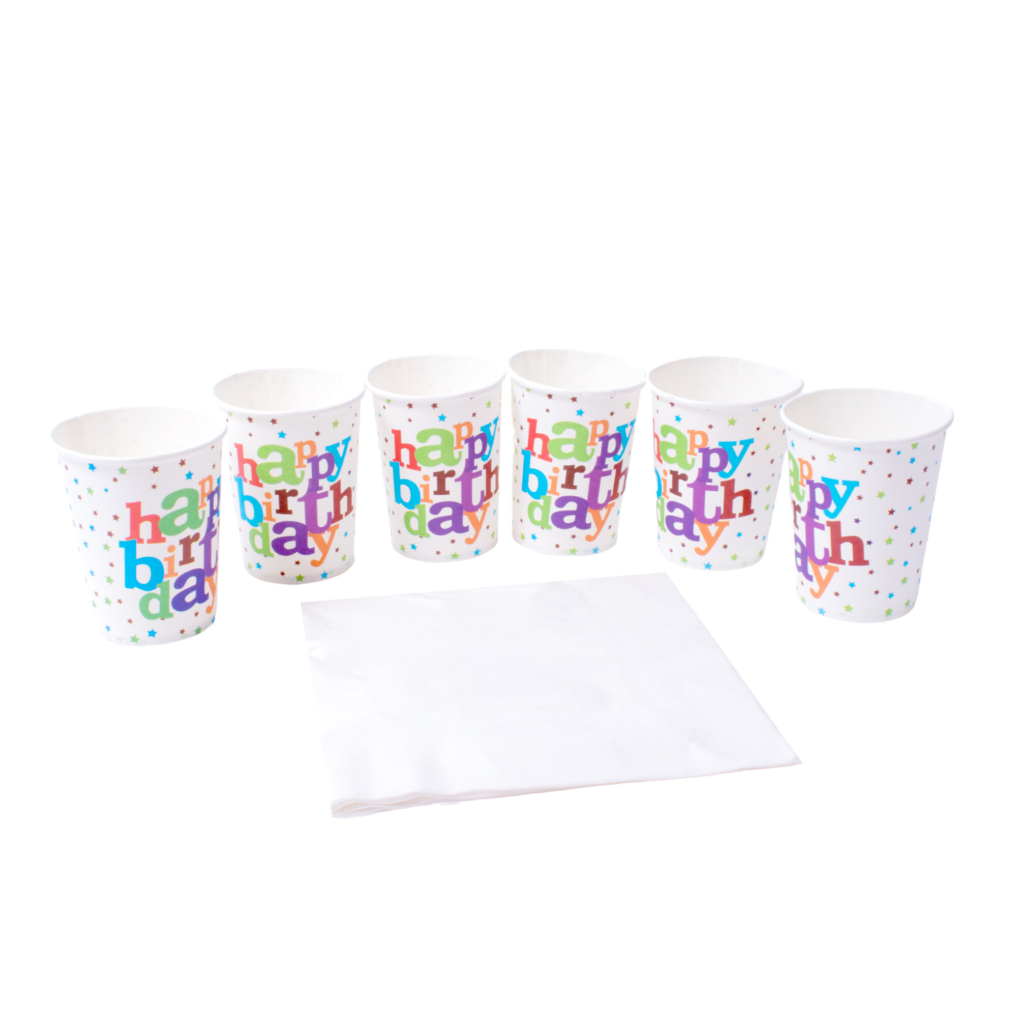 Naše papírové kelímky jsou ideální pro podávání nápojů. Jsou lehké, snadno se drží a jejich design dokonale ladí s ostatními prvky sady. Navíc jsou ekologické a snadno recyklovatelné.