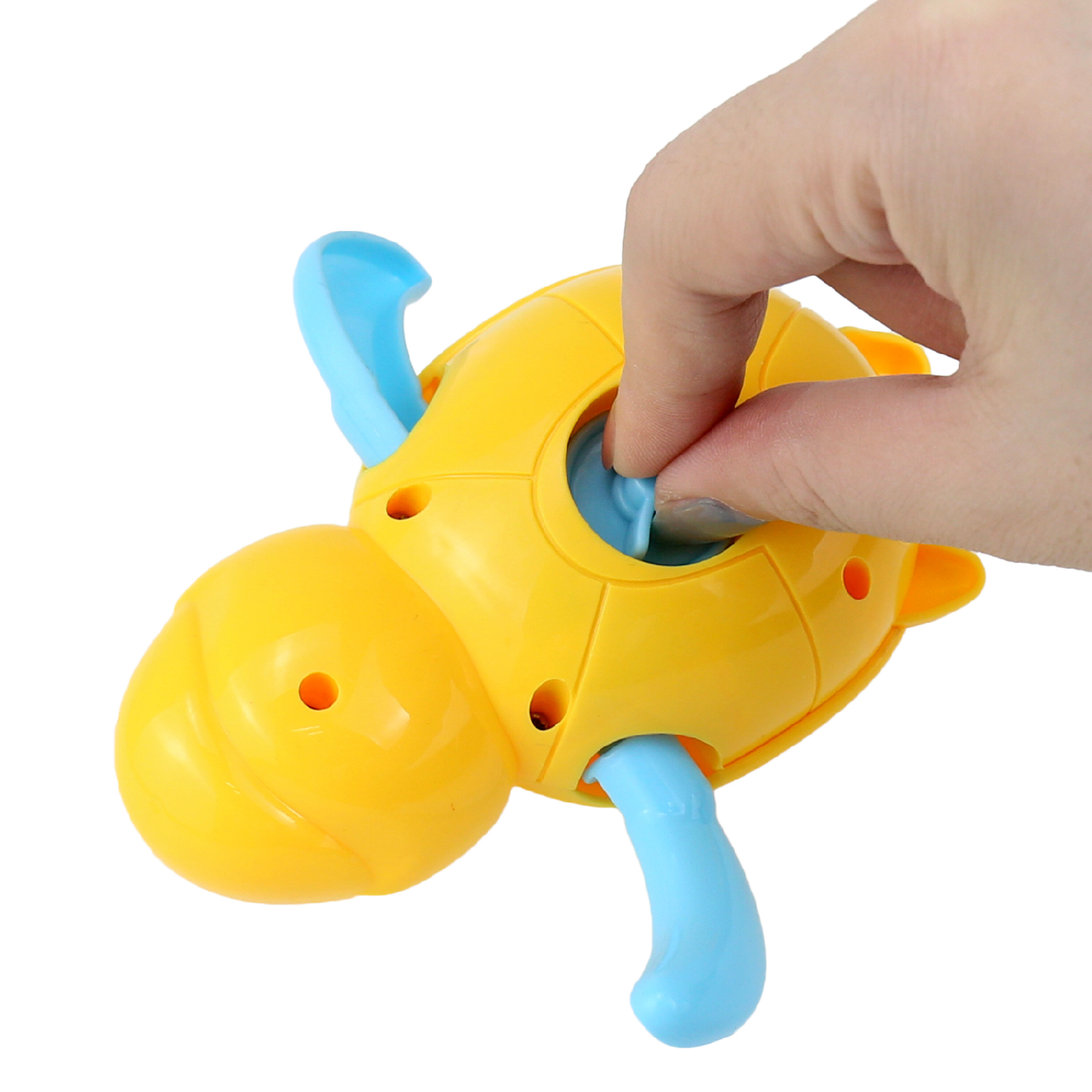 Natáhnout ho zvládnou i nejmenší děti. Jde to opravdu jednoduše. Pak už stačí želvičku položit na hladinu a začne plavat pomocí ploutví.