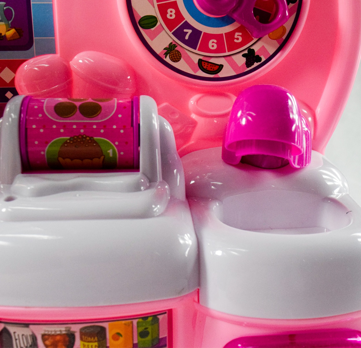 Tento model dětské kuchyňky je vybaven funkčními prvky a doplňky.