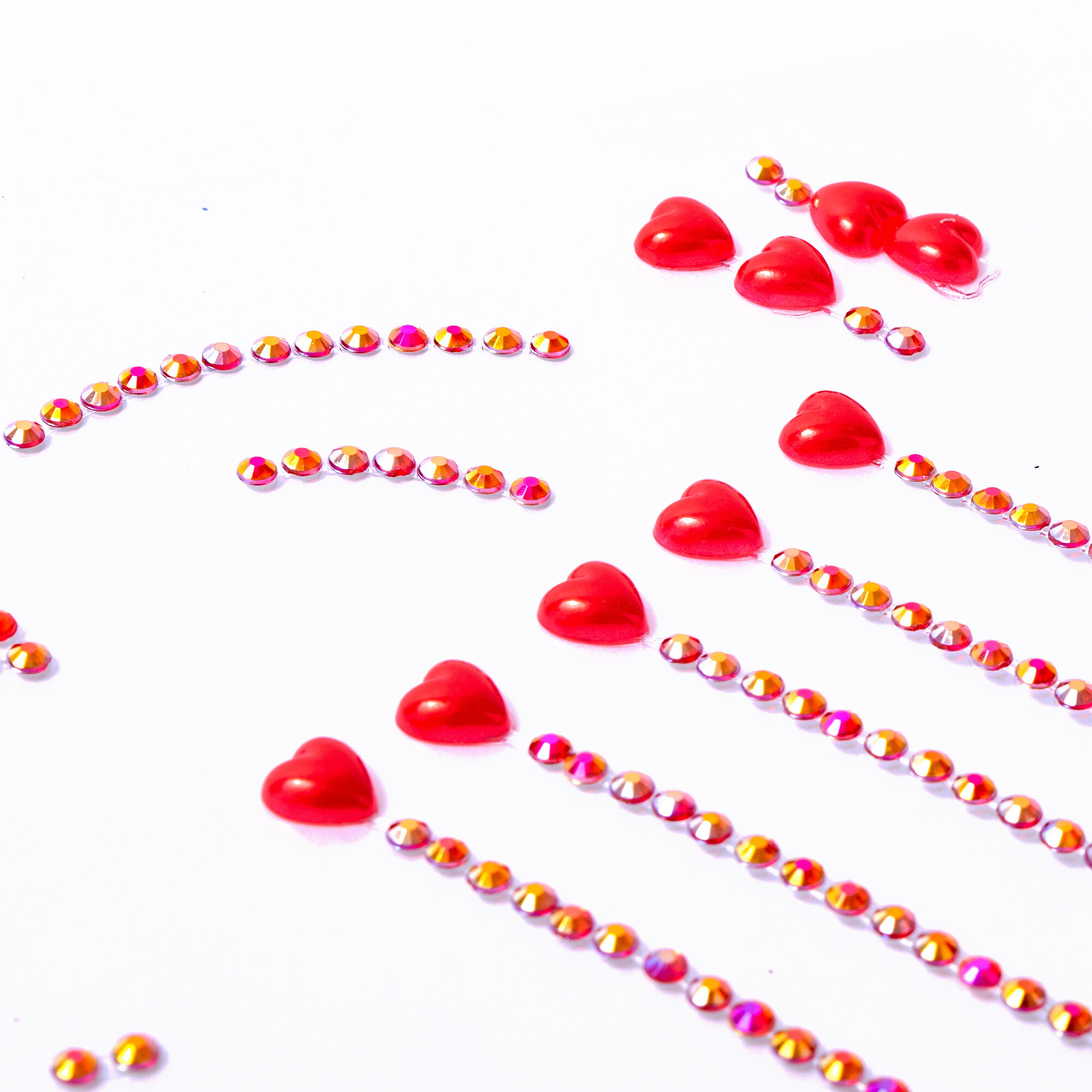 Použití našich kamínků je velmi jednoduché. Stačí je odlepit z podkladového papíru a přilepit na požadované místo. Můžete je použít na obličej, vlasy, nehty nebo jakoukoli jinou část těla. Kamínky pevně drží na místě, ale zároveň je lze snadno odstranit bez poškození pokožky nebo vlasů. Díky tomu můžete měnit svůj vzhled podle nálady a příležitosti.