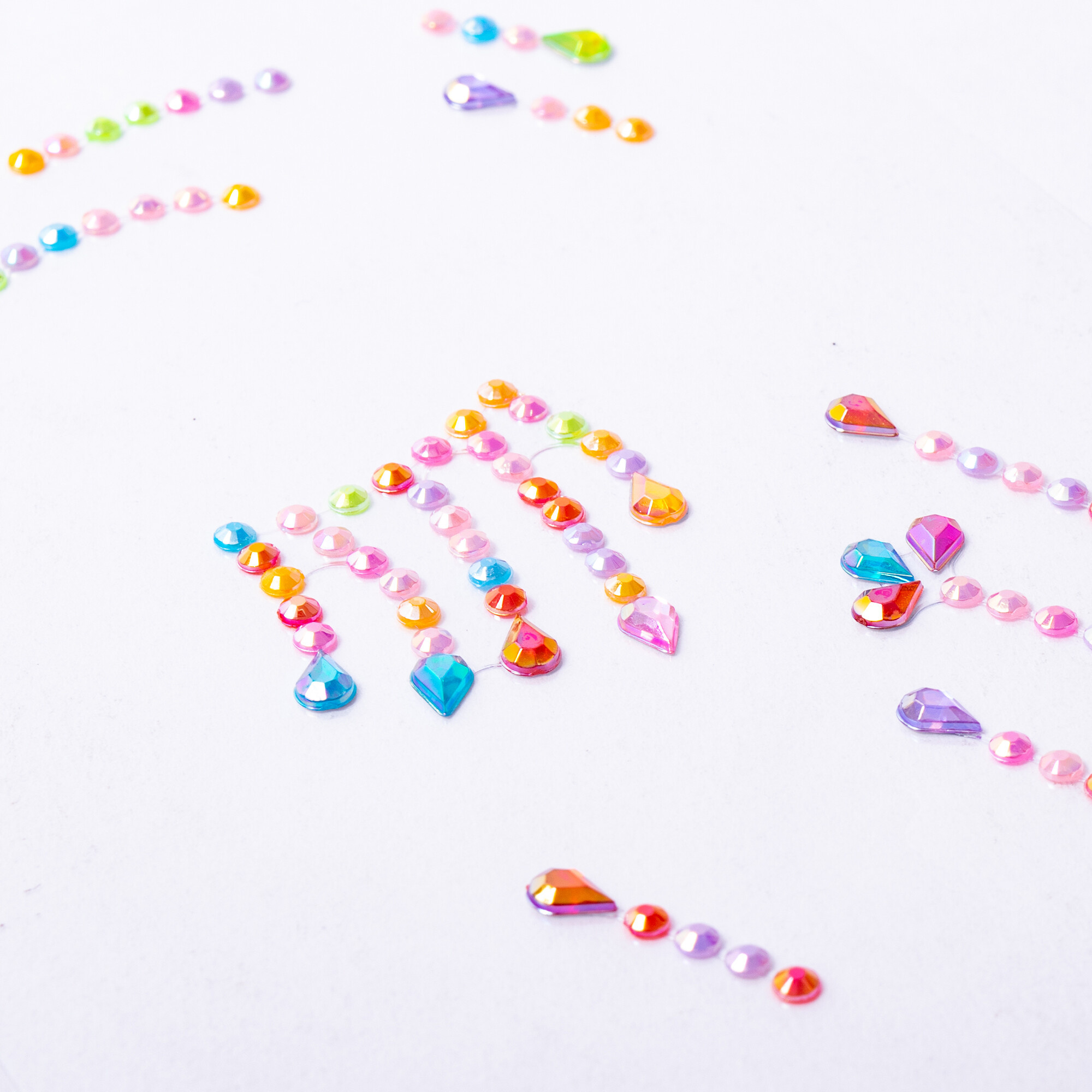 Použití našich kamínků je velmi jednoduché. Stačí je odlepit z podkladového papíru a přilepit na požadované místo. Můžete je použít na obličej, vlasy, nehty nebo jakoukoli jinou část těla. Kamínky pevně drží na místě, ale zároveň je lze snadno odstranit bez poškození pokožky nebo vlasů. Díky tomu můžete měnit svůj vzhled podle nálady a příležitosti.