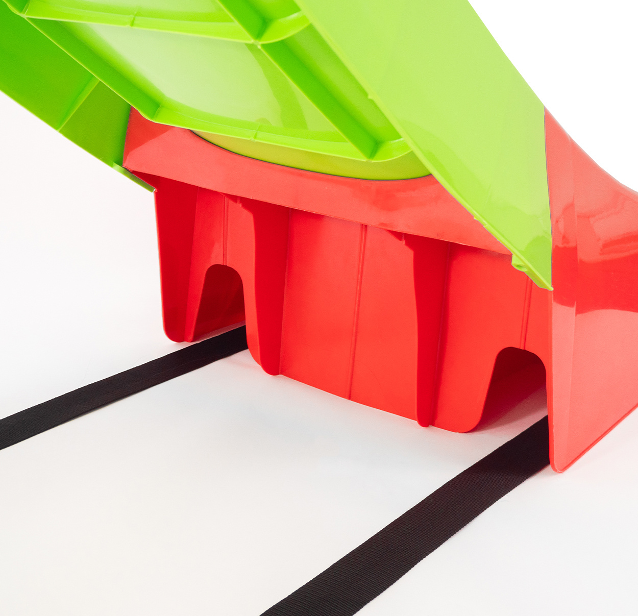 DŮLEŽITÁ BEZPEČNOSTNÍ UPOZORNĚNÍ: při skládání skluzavky je velmi důležité řídit se přiloženým návodem k použití. Nezapomínejte na zabezpečovací pás a šrouby, které jsou také součástí balení.