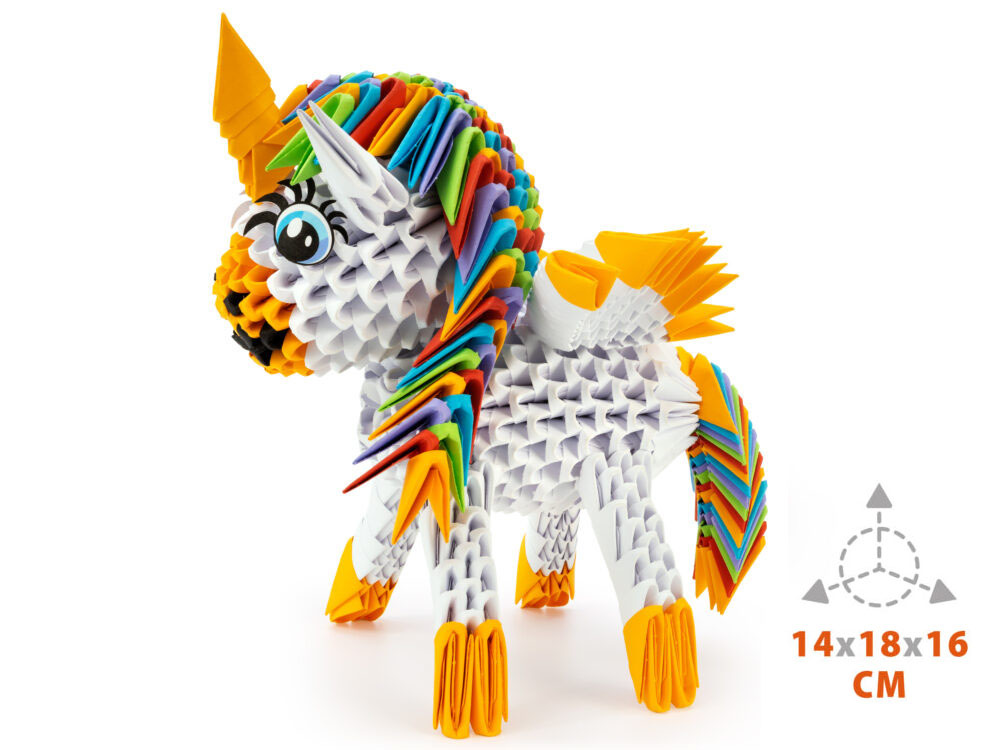 ORIGAMI 3D - Jednorožec je puzzle pro děti od 8 let. Sada se skládá z 656 dílků, ze kterých lze sestavit rozkošného jednorožce.