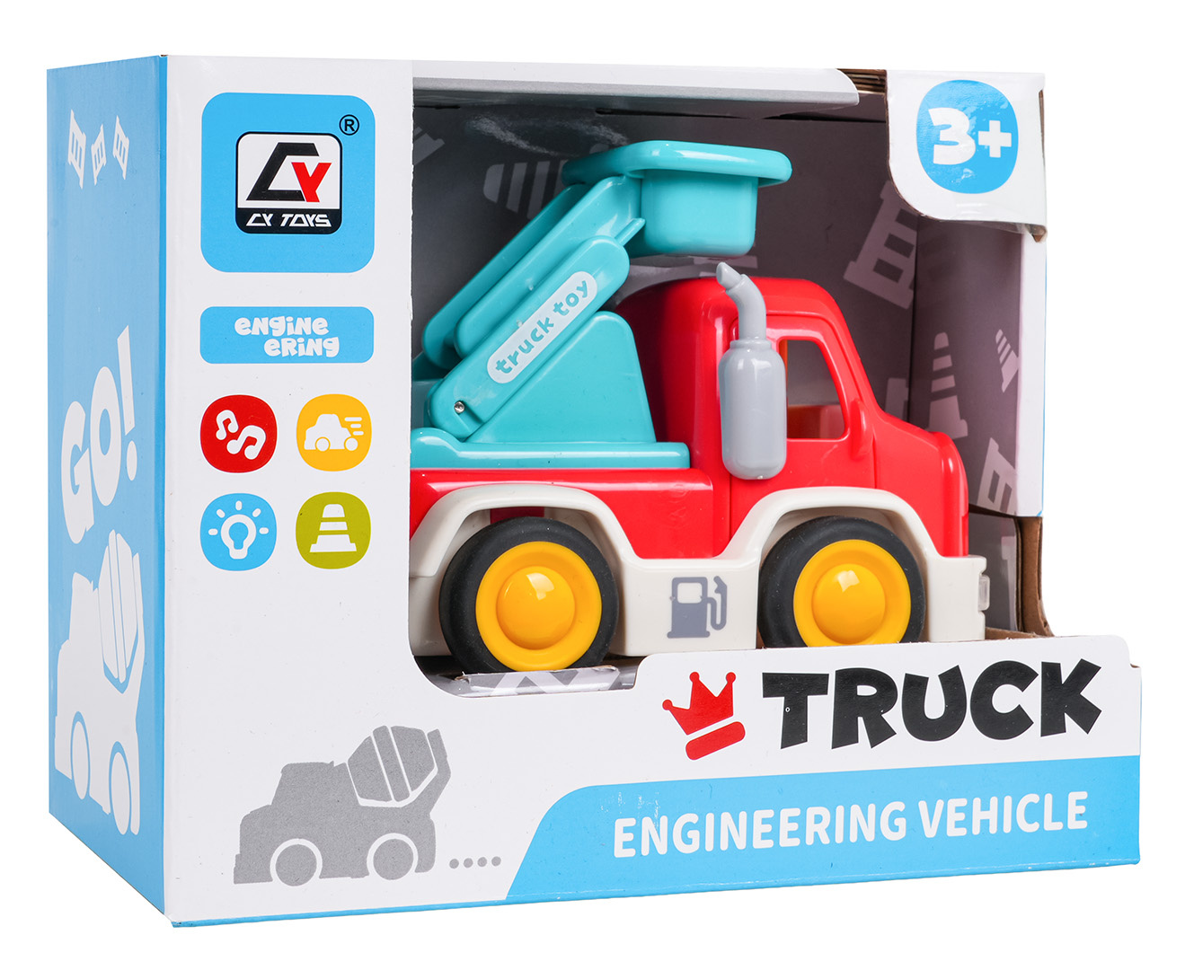 Interaktivní autíčko jeřáb s funkcí zvuku a světla pro děti od tří let věku. Hračka je vyrobena z nejkvalitnějšího plastu v živých barvách. Žebřík s košem můžeme zvedat a spouštět, a po stisknutí na vozidlo spustíme veselé melodie a světla. Kolečka vozidla jsou vyrobena z gumy, aby vozidlo mělo dobrou přilnavost, a pohon zajišťuje volný pohyb. Hračka je napájena bateriemi typu 3 x AG13 (v balení).
