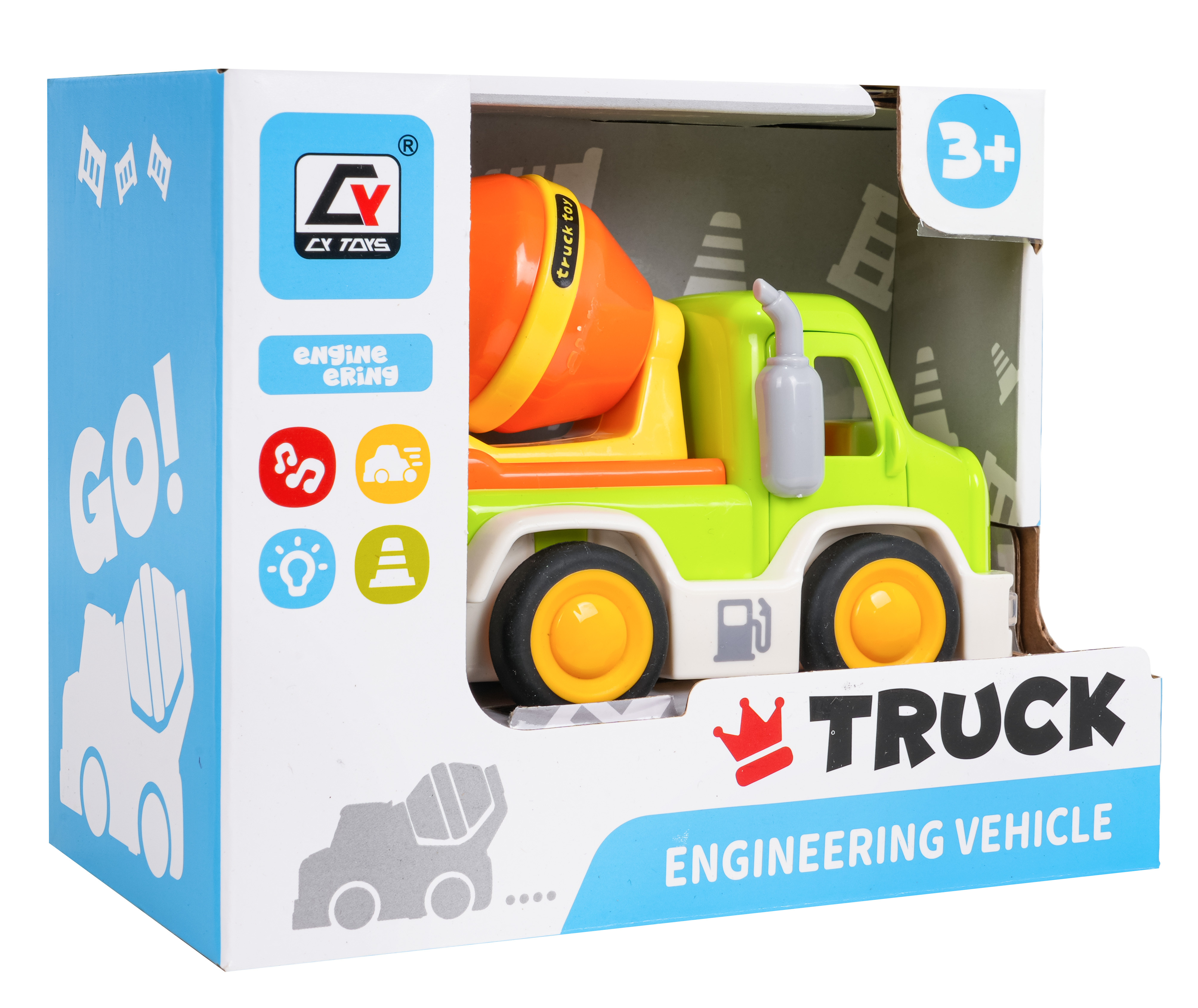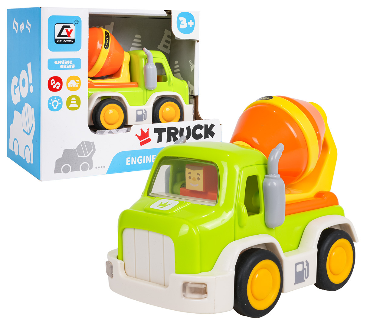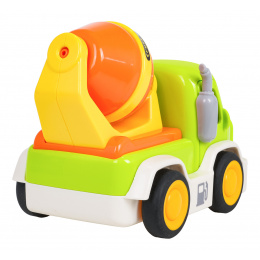Interaktivní autíčko míchačka s funkcí zvuku a světla pro děti od tří let věku. Hračka je vyrobena z nejkvalitnějšího plastu v živých barvách. Míchačka na beton má pohyblivý buben na beton, a po stisknutí vozidla spustíme veselé melodie a světla. Kolečka vozidla jsou vyrobena z gumy, aby vozidlo mělo dobrou přilnavost, a pohon zajišťuje volný pohyb. Hračka je napájena bateriemi typu 3 x AG13 (v balení).