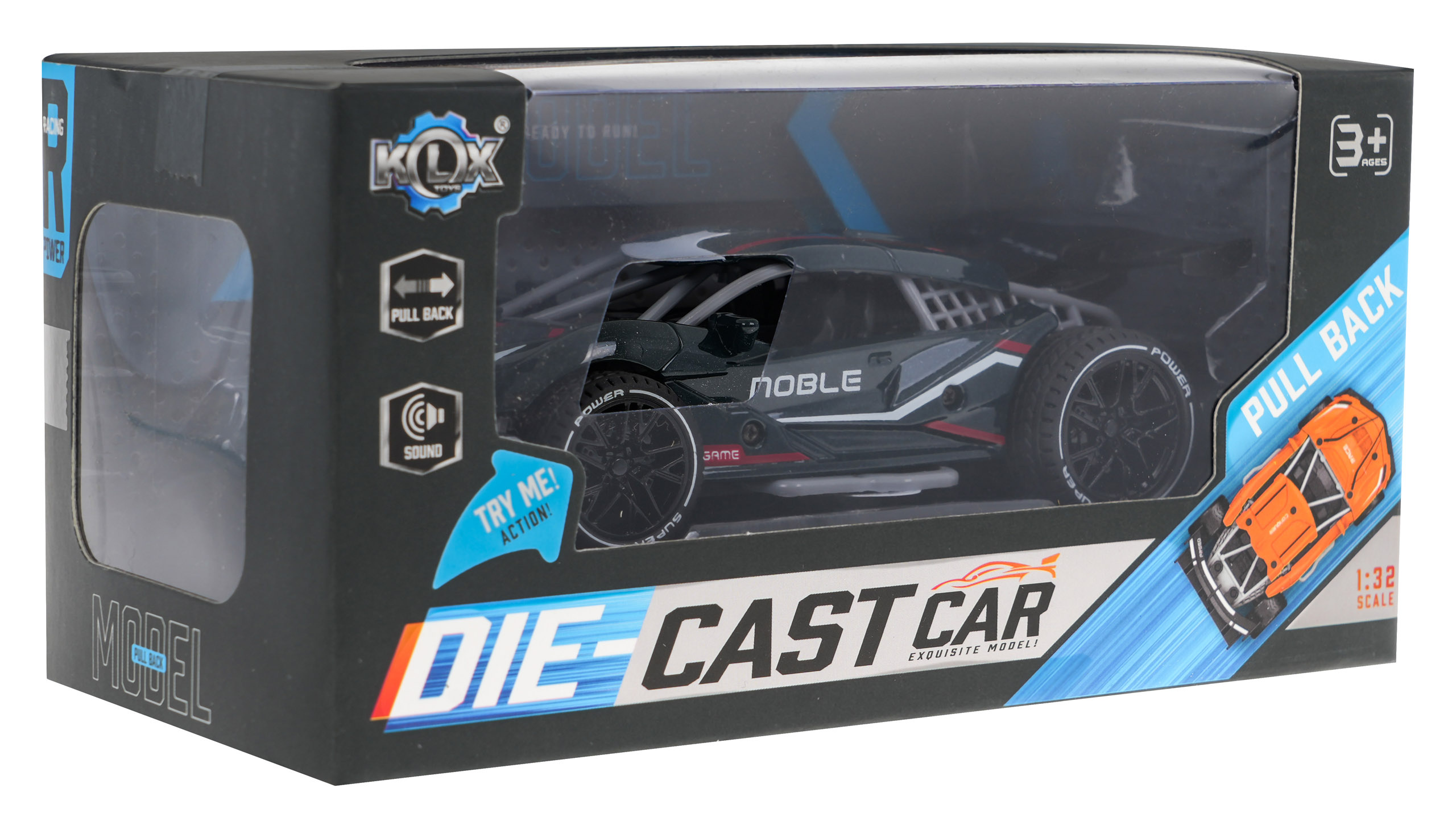 Kovové autíčko s pohonem Pull back, gumovými pneumatikami a zvukovými efekty je vhodné pro děti od 3 let. Vozidlo bylo vyrobeno s důrazem na detail s použitím nejkvalitnějších materiálů. Kovová konstrukce zajišťuje pevnost a robustnost. Stačí hračku zatlačit dozadu a ta se rychle posune dopředu, přičemž vydává zvuk zážehového motoru a jízdy sportovního auta. Hračka je napájena 3 bateriemi AG3, které jsou součástí balení.