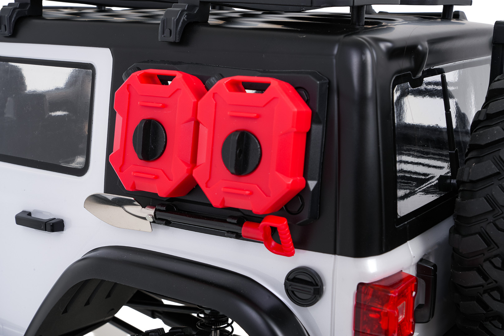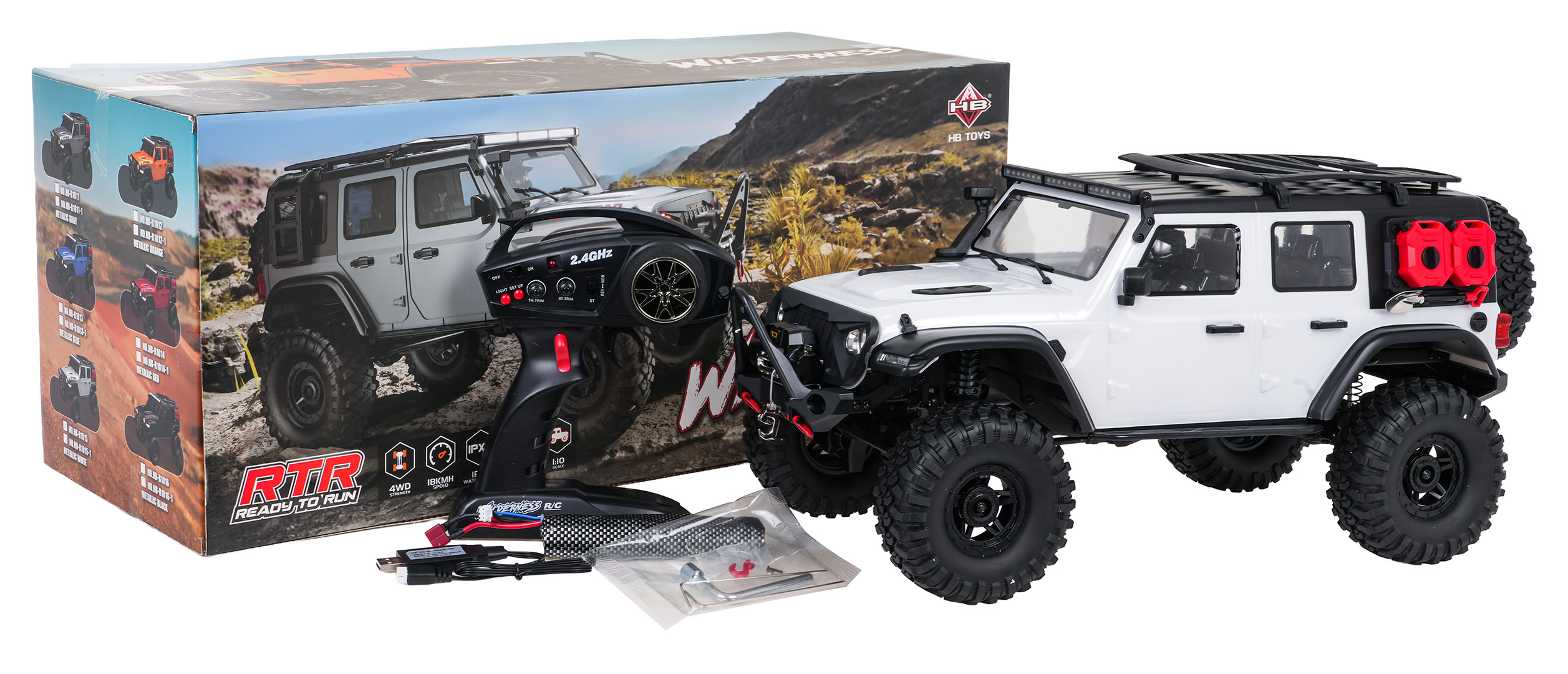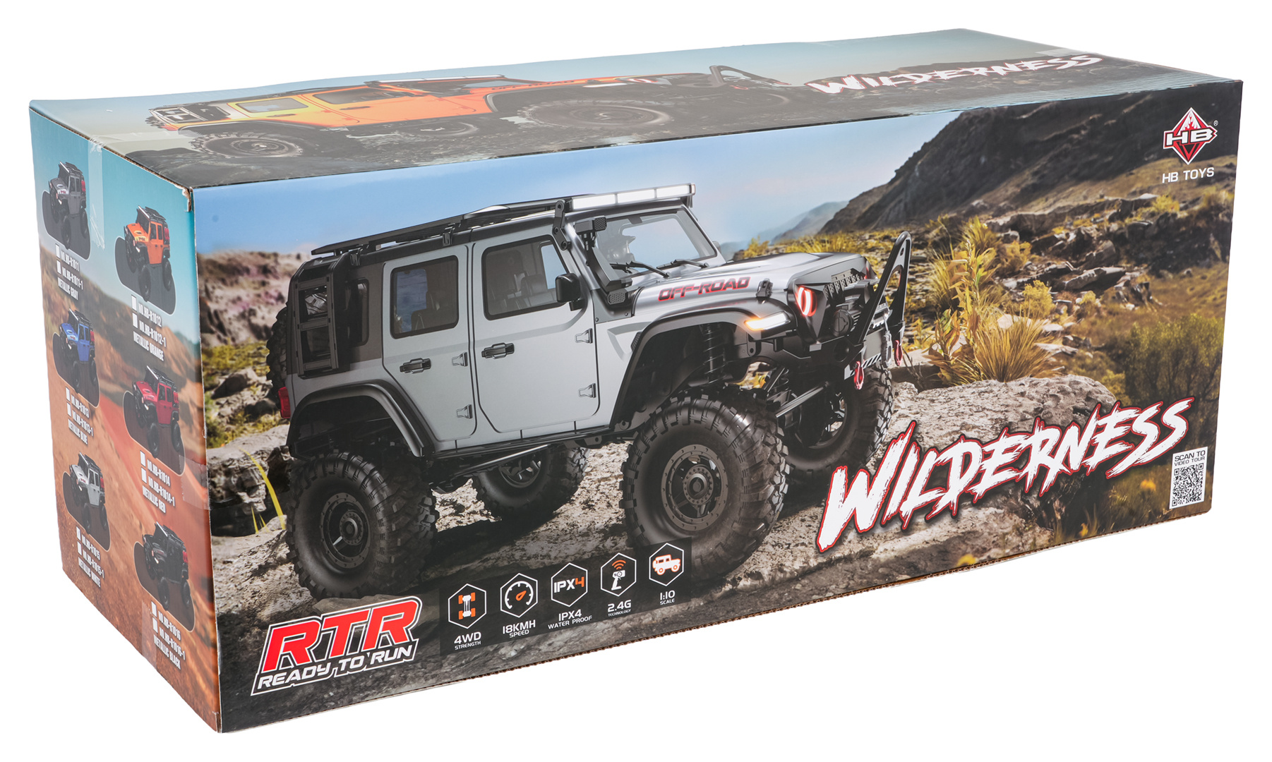 Dálkově ovládané auto Wilderness, vyrobené v měřítku 1:10, pro děti od čtrnácti let. Vozidlo má lakovanou karoserii, LED osvětlení: světlomety, brzdová světla, zpětná světla, směrová světla, po setmění vypadá nádherně. Individuální zavěšení na každé kolo, kovové tyče u ramen, vestavěný zadní a přední diferenciál. Velké gumové pneumatiky s běhounem, velmi velký úhel natočení způsobuje, že vozidlo překoná jakýkoli povrch. Na zadní části vozidla se nachází plnohodnotné rezervní kolo. Vozidlo jezdí všemi směry, snadno překonává překážky a navíc je vodotěsné. Maximální rychlost vozidla je 18 km/h, z ovladače můžeme nastavit konstantní rychlost vozidla. Na výběr máme dvě rychlosti. Auto je napájeno akumulátorem typu 7,4 V (v balení) a 4 x AA 1,5 V (není v balení) - ovladač.