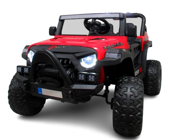 Vybavení vozidla: dálkové ovládání 2.4G, funkce pomalého startu, pěnová kola Eva, měkké sedadlo z ekokůže, moderní hudební panel s melodiemi, regulace hlasitosti, vstup MP3 a USB, indikátor nabití baterie (voltmetr) na hudebním panelu, imitace tlumičů na přední a zadní ose, přepínač vpřed-vzad, tlačítko zapnutí-vypnutí, vypínač světel, 1 lithiová baterie 12V4,5 Li-Ion nabíječka (vstup 220-230 V), bezpečnostní pásy, svítící přední a horní světla, klakson a hudba v volantu, otevírací dveře (obě), zámek dveří, zvuk startujícího motoru, 2 boční zrcátka, 4 rychlosti (vpřed: pomalá, rychlá, nejrychlejší: vzad: stálá), změna rychlosti pouze z dálkového ovladače; plynový pedál, Poznámka: horní lampy vyžadují další tužkové baterie (velké: AA)
