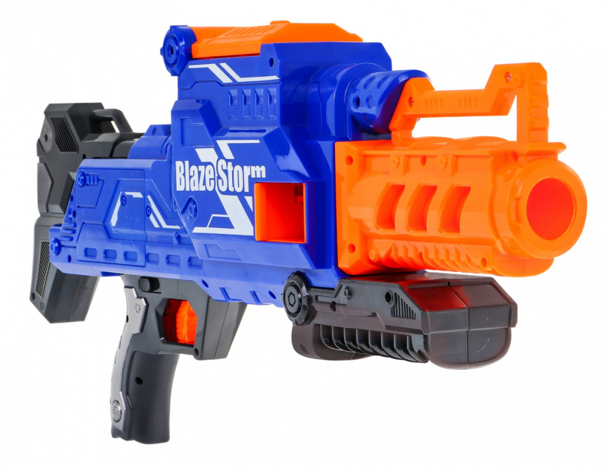 Blaze Storm je puška určená pro děti od 8 let. Každý malý vojenský nadšenec si s ním užije spoustu zábavy. Jedná se o plně elektrický automatický typ s horním plněním. Puška má speciální posuvné vyhazovací okénko pro odstranění zablokovaných nábojů. Předností představené pušky je rychlá střelba, spolehlivost a funkčnost. Hračka je napájena 8 bateriemi AA 1,5 V, které nejsou součástí balení.