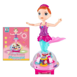 Tančící krásná mořská panna naláká každého k zábavě. Barevná blikající světelná základna dodává hračce na atraktivitě. Funkce: - jezdí - vydává zvuky (4 varianty) - pohyblivé prvky uvnitř kopule - projektor, promítající obraz na podlahu - 4 diody: červená, modrá, zelená, růžová - možnost zablokování jízdy Napájení: 3x AA (není součástí balení) Rozměry hračky: 16x16x33 cm Hračka pro děti od 3 let Produkt zabalený v dalším kartonu - připraven k odeslání. Rozměry kartonu: 20x16x16cm Produkt zabalený v dalším kartonu.
