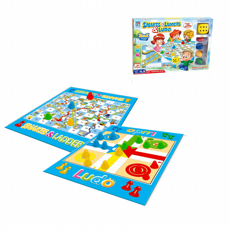 Desková hra 2v1: Hadi a žebříky a Člověče, nezlob se je klasická rodinná sada, která zaručuje skvělou zábavu pro děti i dospělé. Barevná oboustranná deska umožňuje hrát dvě populární hry. Hra rozvíjí logické myšlení, učí počítání a zdravé soutěživosti, poskytuje zábavu na dlouhé hodiny. V sadě: oboustranná měkká herní deska, figurky, hrací kostka