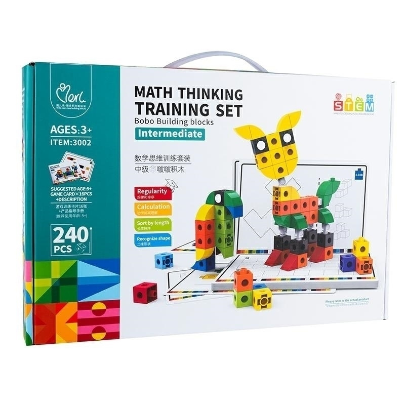 Sada kostek pro malé stavitele. Díky hře s kostkami si děti procvičují tvůrčí myšlení a manuální dovednosti. To skvělý trénink koncentrace, trpělivosti a koordinace pohybů. Hrou s lehkými a odolnými kostkami si dítě procvičuje prostorovou představivost. Dokonale působí na senzoriku a smysly: živé barvy stimulují vizuální vnímání, pozornost a schopnost pozorování. Specifikace: počet prvků: 240 16 karet pro cvičení prostorové geometrie stíratelný fix v sadě Hračka určena pro děti od 3 let.