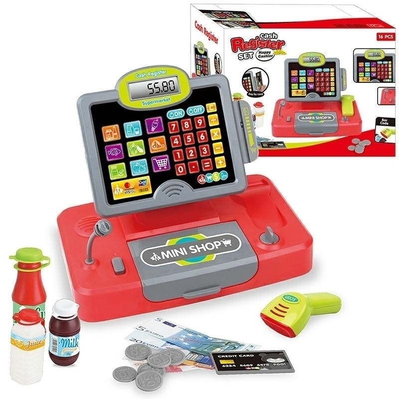 Velká sada Pokladna s LCD displejem + příslušenství je skvělý nápad na úspěšnou hru na obchod! Elektronická pokladna je vybavena otevíratelnou zásuvkou a elektronickou čtečkou čárových kódů. Během skenování produktů se na čtečce rozsvítí světlo a dítě uslyší pípnutí. Pokladna je vybavena skutečnou kalkulačkou, díky které malý prodejce bude moci bez obtíží spočítat hodnotu nákupů. Součástí sady jsou také barevné imitace různých potravinářských výrobků, kreditní karta, bankovky a mince. V sadě: - pokladna s vestavěnou kalkulačkou - 3x imitace potravin - 1x bezdrátová čtečka kódů - 1x kreditní karta - 6x mince - 4x bankovky Vlastnosti produktu: - napájení pokladny: 2x AA (není součástí balení) - napájení čtečky kódů: 1xAAA (není součástí balení) - terminál platebních karet vydává zvuk po "načtení" karty - bezpečné pro děti - čtečka kódů se světýlkem - otevíratelná komora na peníze - LCD displej s kalkulačkou - atrapa mikrofonu - rozměry pokladny: 27x16x20,5cm Hračka není vhodná pro děti mladší 3 let. Produkt zabalený v dodatečné kartonové krabici - připravený k odeslání. Rozměry kartonu: 33x26x20 cm Počet kusů. na paletě: 72