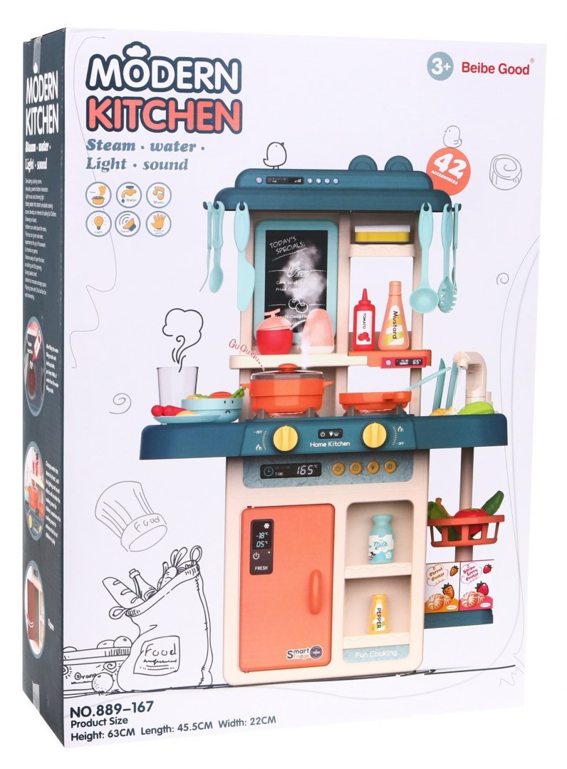 | Rozměry kuchyně cca. 63 cm x 45,5 cm x 22 cm. Přibližné rozměry balení. 49,5 cm x 35 cm x 14,5 cm. |