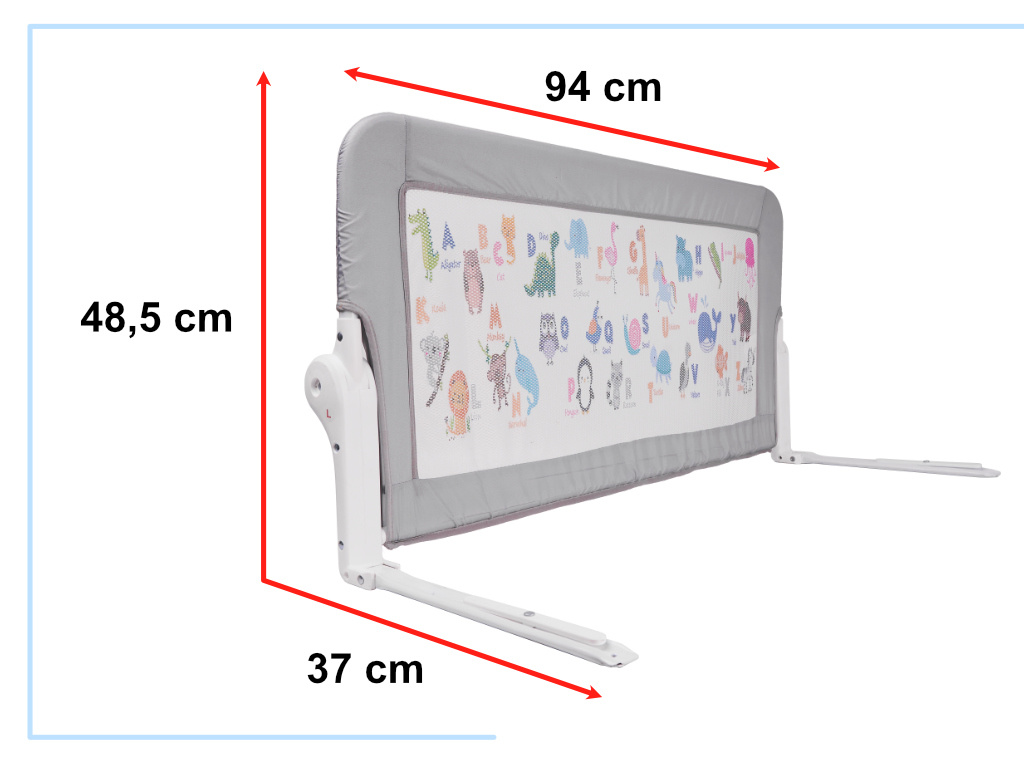 Praktická bezpečnostní zábrana na postel. Poskytne klidný spánek a jistotu, že dítě nespadne na zem. Instalace je neuvěřitelně snadná, stačí ji zasunout pod matraci. Materiál: kovový rám + plast. Lat. zábradlí: 90 cm. Výška.: 48,5 cm.Celý popis