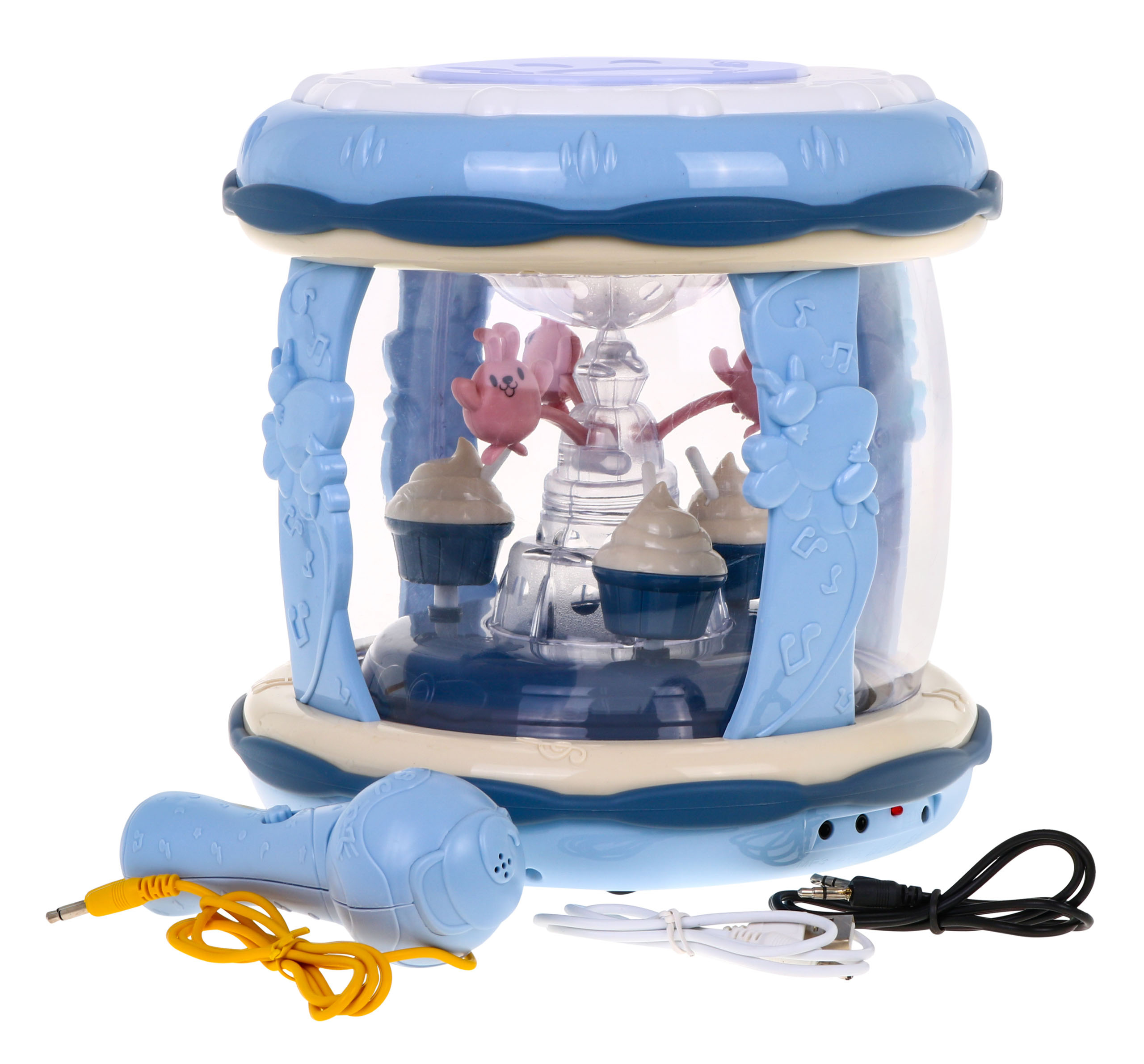 Interaktivní multifunkční kostka se zvukovými a světelnými efekty pro děti od 18 měsíců. Je vyrobena z vysoce kvalitního plastu, nemá ostré hrany a je pro batole bezpečná. V horní části kostky se nachází buben a zvukový panel, uprostřed je kolotoč s barevnými světelnými efekty, zatímco ve spodní části máme možnost připojit mikrofon (je součástí balení), vstup MP3 a vstup pro nabíjení. Hračka je napájena baterií typu 3,7 V (je součástí balení).