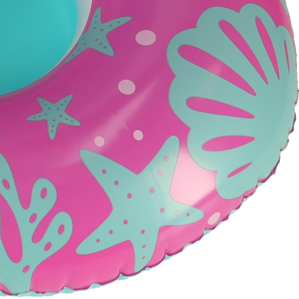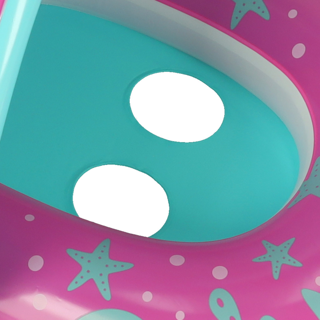 Růžové kolo se sedadlem je ideální pro batole, které se právě začíná učit plavat. Díkyotvorům na nohy bude vaše dítě v kolečku sedět stabilně a nevypadne z něj. Nafukovací stříška poskytuje ochranu jemné pokožce vašeho dítěte před škodlivými slunečními paprsky. Navíc při odchodu do bazénu lze stříšku odejmout. Kolo je vyrobeno z odolného PVC, takže vydrží více než jednu letní sezónu.