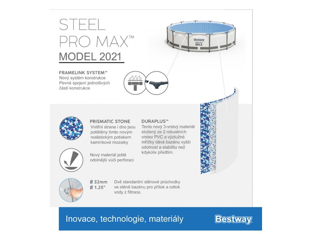 Bazén je vybaven systémem FrameLink System ™, který zajišťuje bezpečné a pevné připojení trubkové konstrukce.