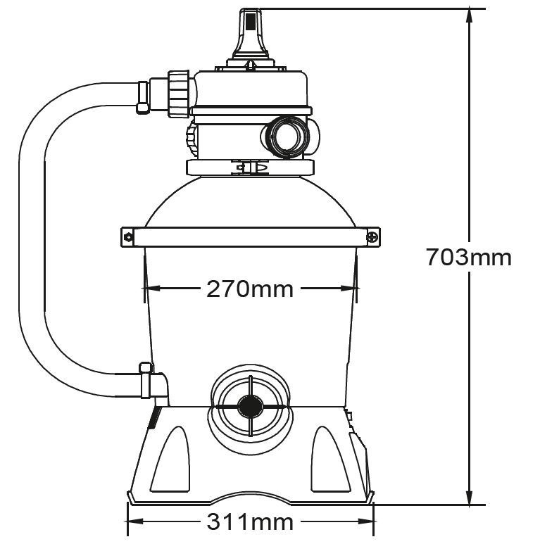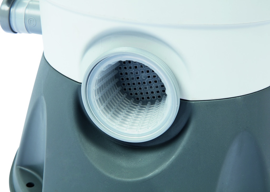 Pískové filtrační zařízení od firmy Bestway se skládá z plastové podstavy, polypropylenové filtrační nádoby s vrchním 6 cestným ventilem, manometru a čerpadla s předfiltrem hrubých nečistot.