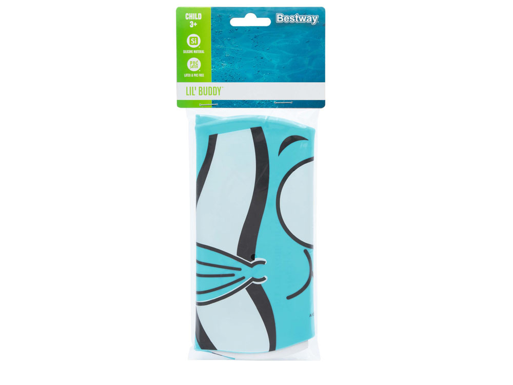 Kšiltovka je vyrobena z jemného silikonu, který se dokonale přizpůsobí tvaru hlavy dítěte a při nasazování netahá za vlasy, čímž vytváří účinnou bariéru proti chlorované vodě a chrání tak pokožku hlavy, vlasy a uši.