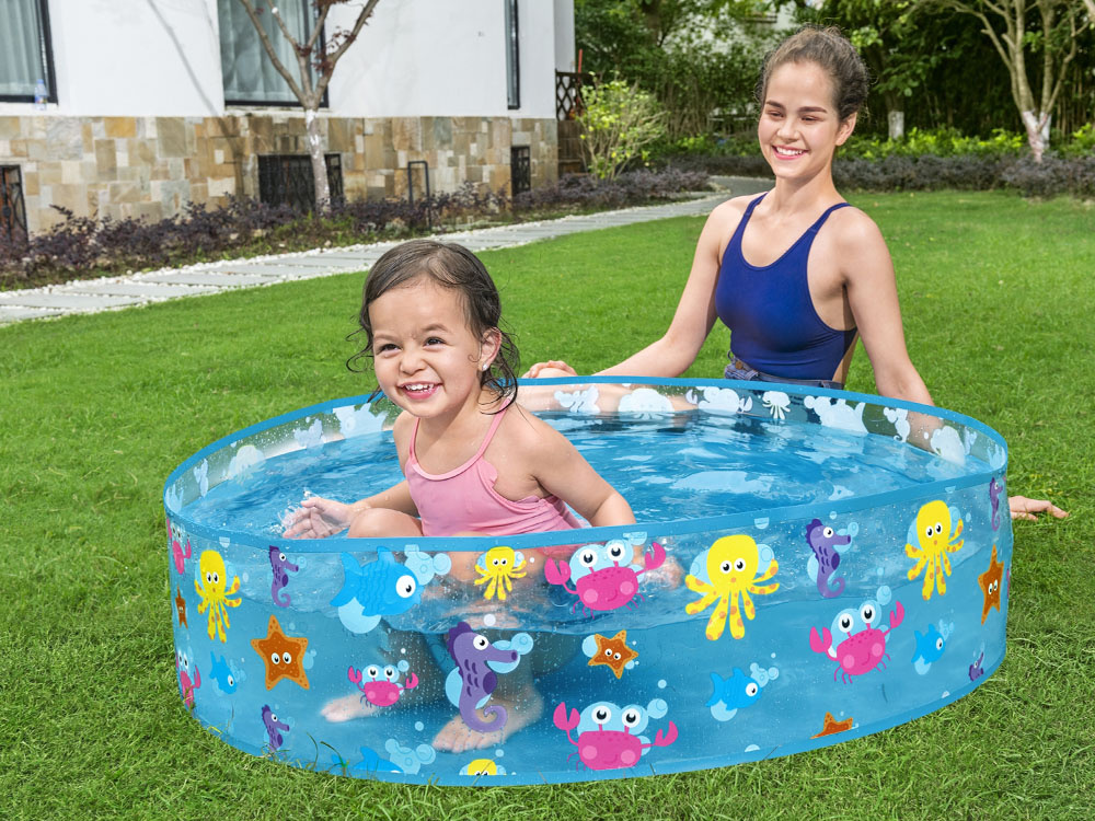 Zahradní bazén Bestway Sea AnimalsBifold - je klasický zahradní bazén vyrobený z pevného vinylového materiálu, který se po naplnění vodou rozpíná. Na stěnách bazénu jsou vyobrazeni mořští živočichové, takže je pravděpodobně ocení každé dítě.