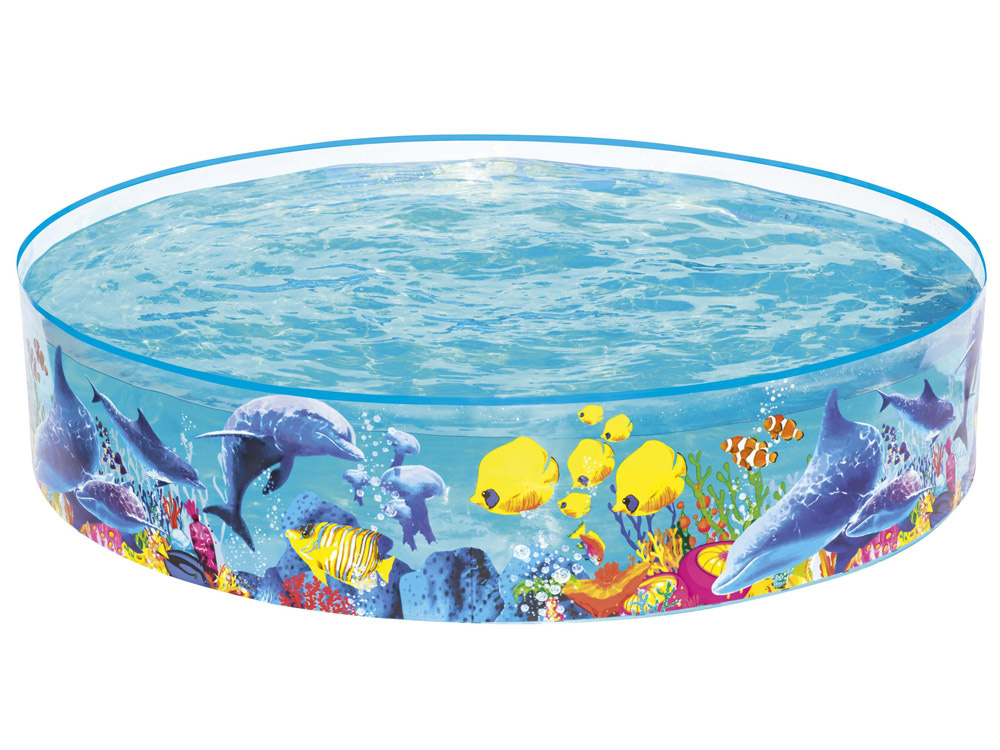 Zahradní bazén Bestway Bifold je klasický zahradní bazén z pevného vinylového materiálu, který se po naplnění vodou rozpíná. Stěny bazénu jsou průhledné s roztomilou mořskou grafikou, takže je pravděpodobně ocení nejeden fanoušek těchto tvorů.
