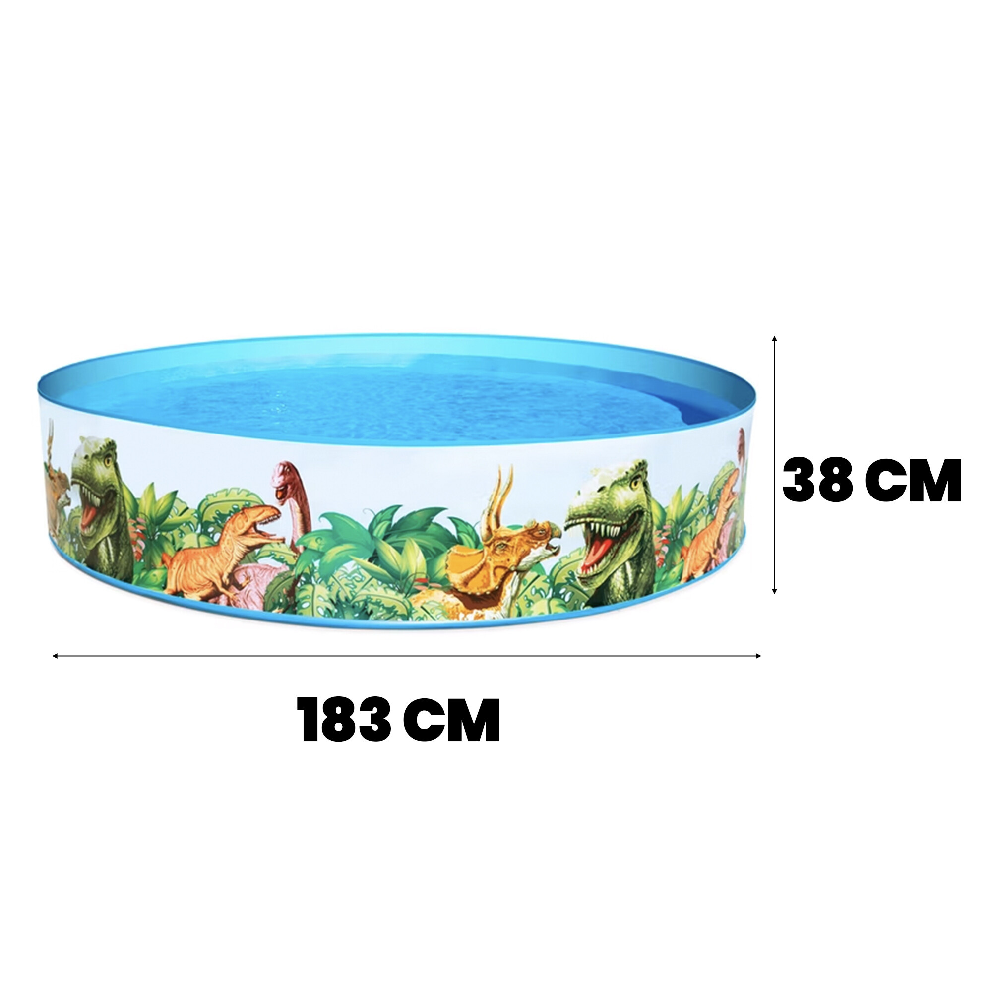 Dětský bazén Dino od renomované italské firmy Bestway je vyrobený z pevného vinylového materiálu, který se roztahuje při plnění vodou.
