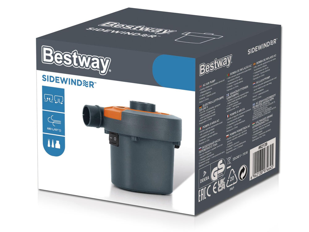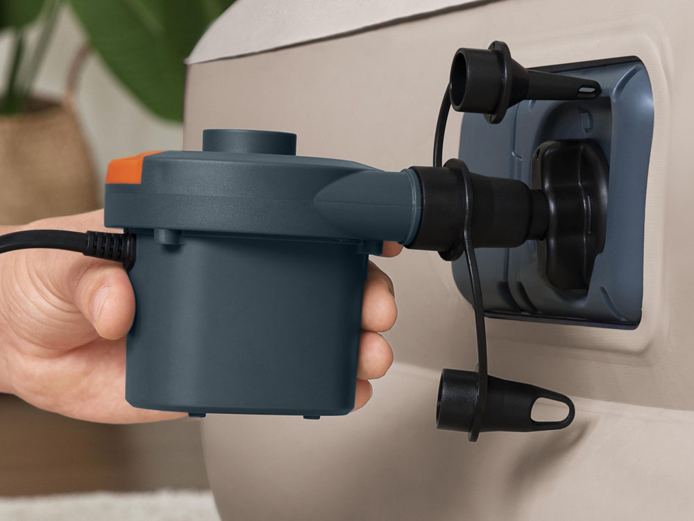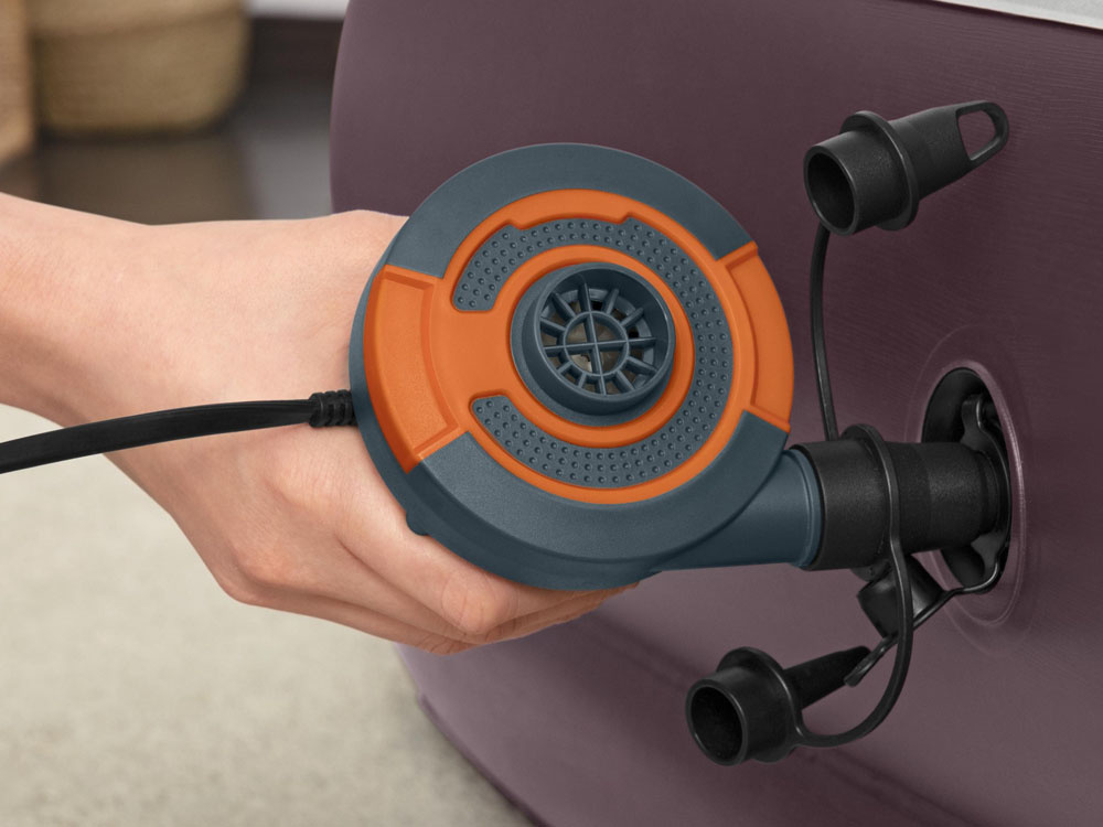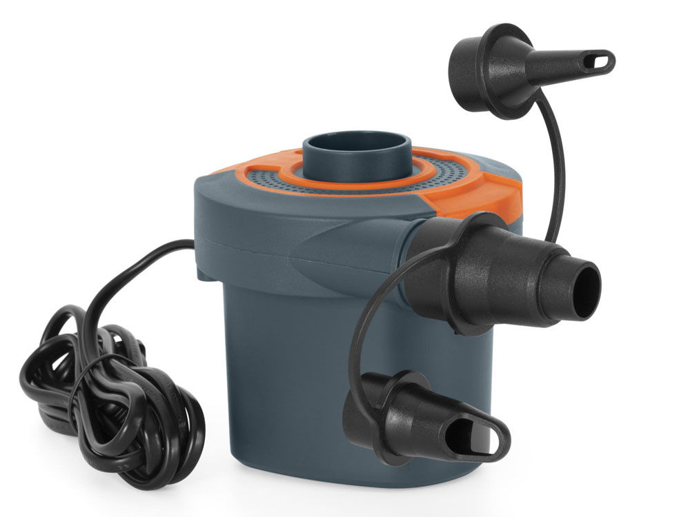 Elektrická pumpa se 3 vyměnitelnými koncovkami se vám bude hodit při nafukování matrace, plaveckého kola nebo dokonce člunu.
