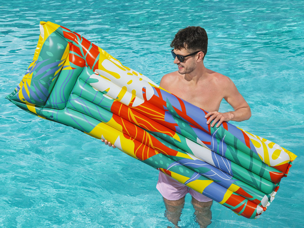 Nafukovací matrace Bestway® Fashion od společnosti Bestway® je nejnovějším přírůstkem, který je ideální pro osvěžující koupání ve vodě v horkých letních dnech.Matrace o rozměrech 183 cm x 69 cm je vyrobena z měkkého, ale odolného vinylu v barevné letní grafice. Díky nafukovací opěrce hlavy vám umožní pohodlný odpočinek a relaxaci. Nabízený model unese na svém povrchu až 90 kg vážící osobu, takže je ideální pro děti i dospělé.Matraci lze snadno nafouknout, vyfouknout a uskladnit.