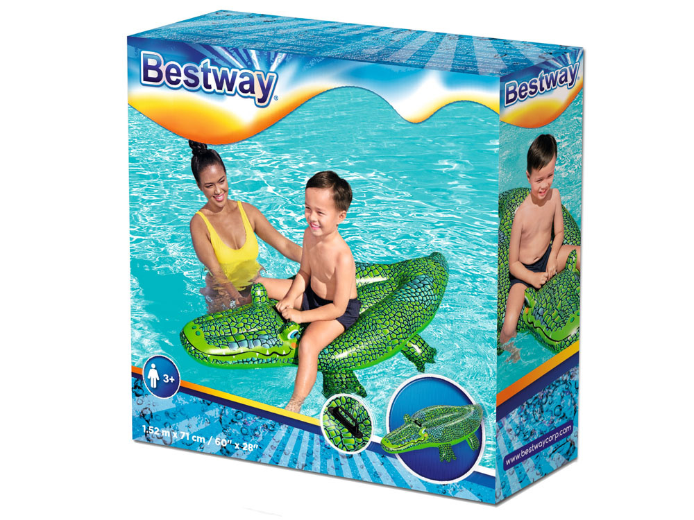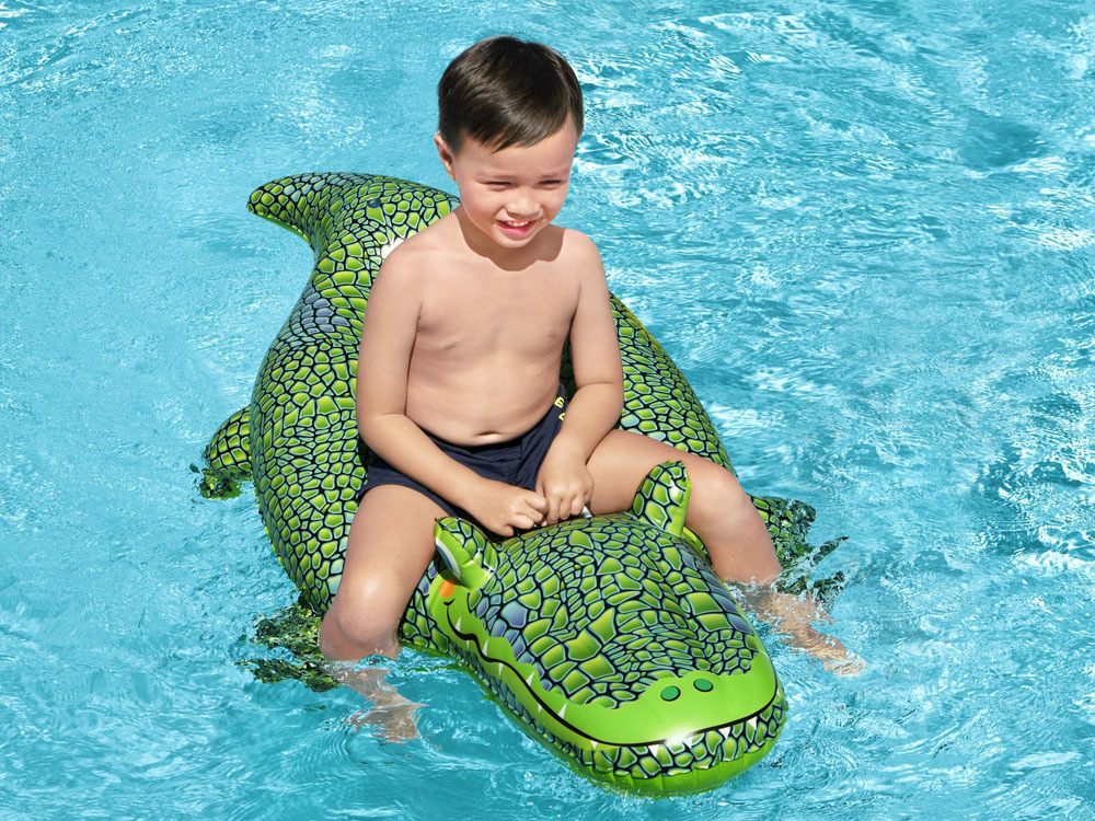 Nafukovací hračka Krokodýl v zelené barvě je senzační nabídkou společnosti Bestway pro tuto sezónu. Plovoucí krokodýl bude na plážích skutečným hitem. Výrobek o rozměrech 152 x 71 cm je vyroben z pevného vinylu.