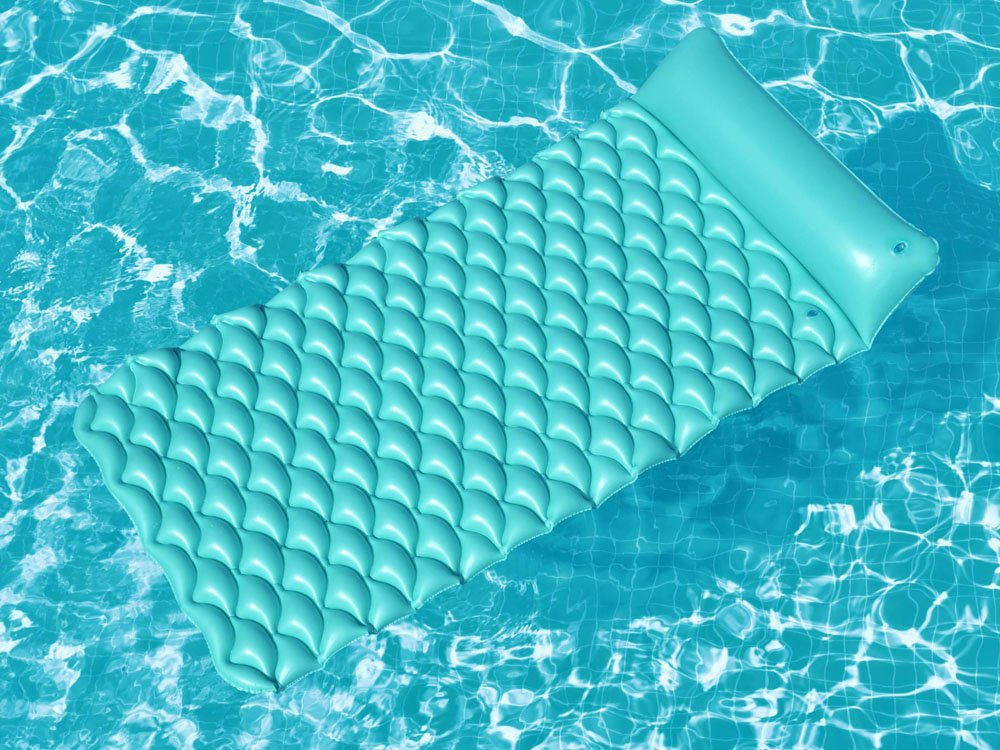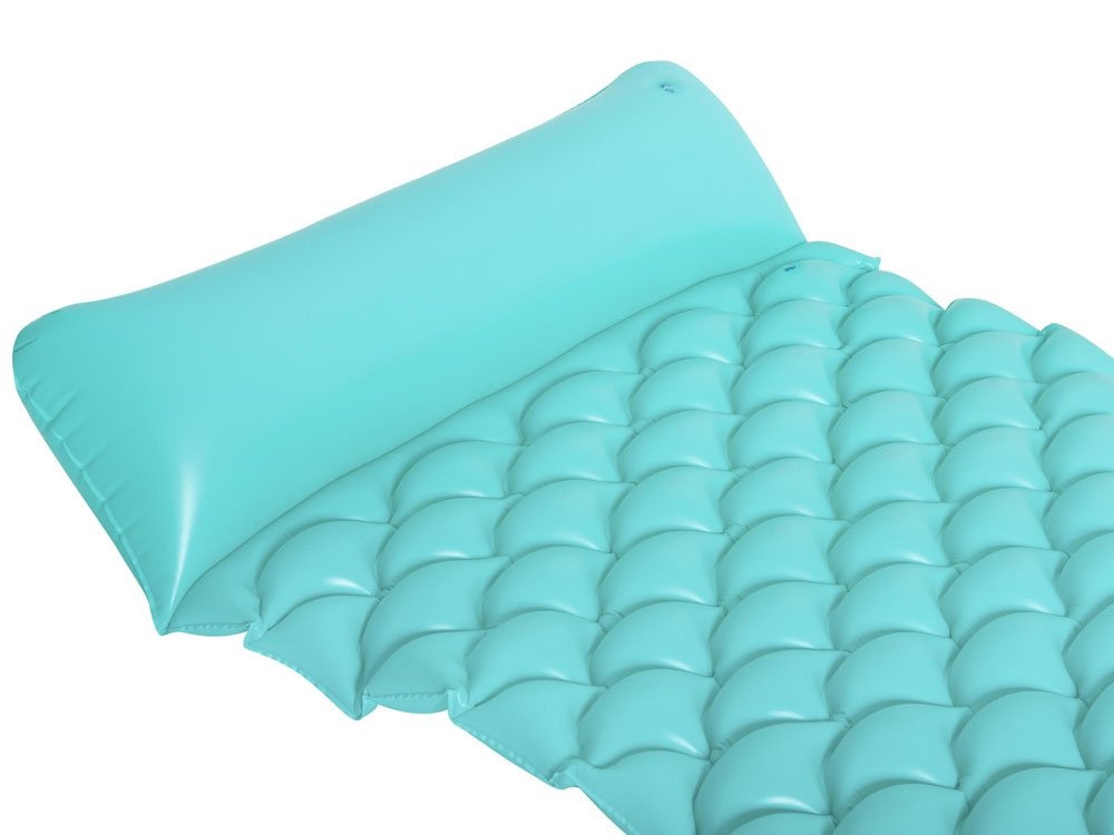 Nafukovací tyrkysová matrace, kterou lze snadno srolovat, je zajímavou nabídkou společnosti Bestway pro nadcházející letní sezónu. Matraci lze použít při odpočinku u vody nebo jako plážovou podložku.Jeho velkou výhodou je, že se dá pohodlně srolovat do ruličky, takže při přepravě nezabírá mnoho místa a usnadňuje každý výlet na pláž.Nafukovací lehátko s opěrkou hlavy má 2 vzduchové komory a zajímavou strukturu, velký prošívaný povrch je skvělý pro horké dny a poskytuje pohodlí při používání. Matrace o rozměrech 213 cm x 86 cm je vyrobena z lehkého, ale odolného PVC plastu a unese osobu o hmotnosti až 90 kg.