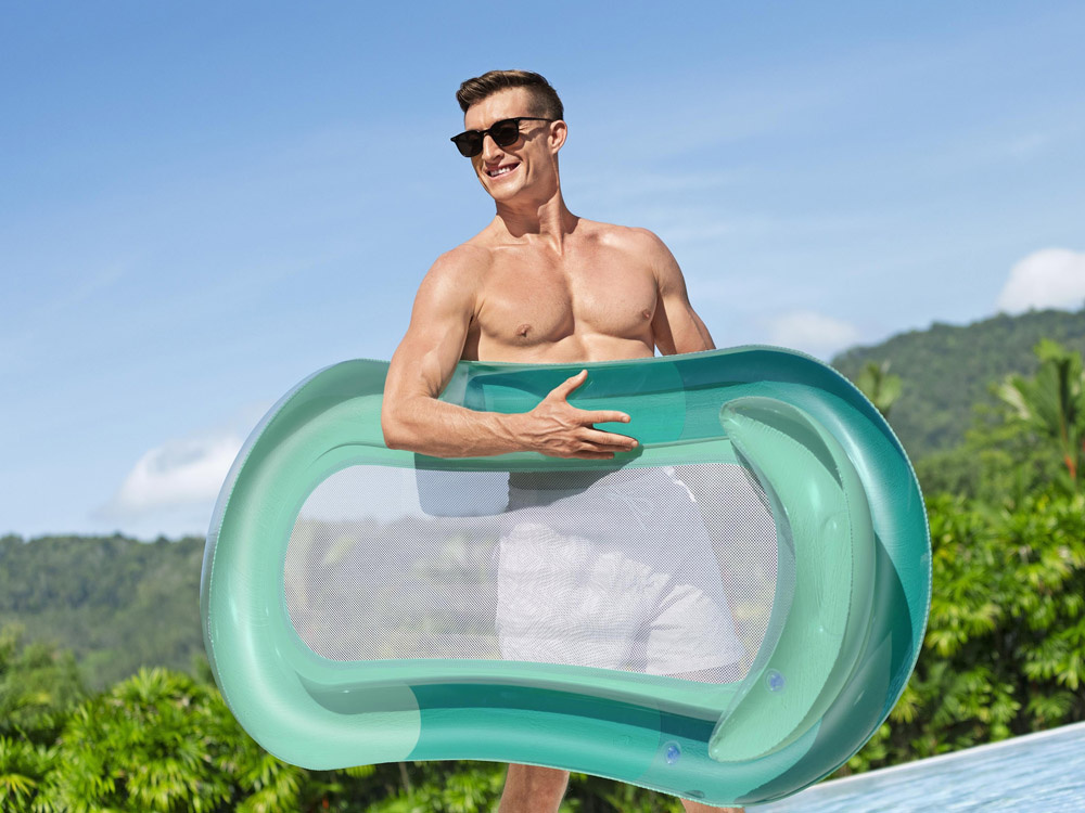 Senzační plavecká matrace s nafukovacími bočnicemi a síťkou uvnitř je skvělá pro lenošení ve vodě.
