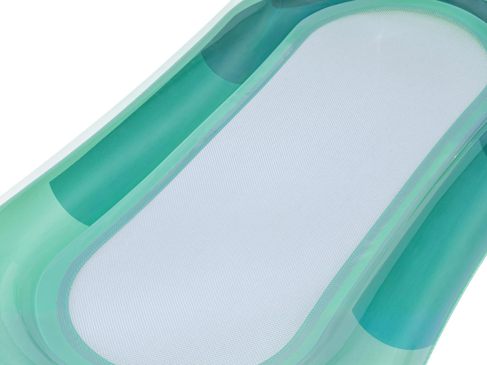 Výrobek o rozměrech 160 x 84 cm je vyroben z plastu PVC. Maximální zatížení je 90 kilogramů. Jeho sedadlo je vyrobeno ze síťoviny, která umožňuje neustálý kontakt s vodou. aby se na ní pohodlně leželo, byla matrace doplněna nafukovacím podhlavníkem.