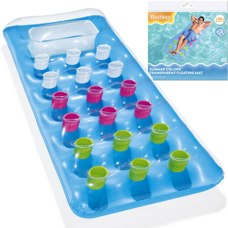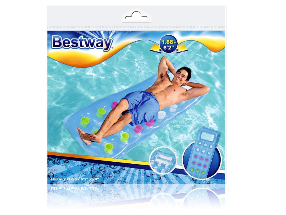 Senzační nafukovací matrace Bestway je skvělá na lenošení ve vodě. Báječně barevná matrace s průhledným oknem vám poskytne čistý požitek z relaxace. Tento výrobek ve svěžích letních barvách se bude velmi dobře vyjímat na každé pláži. Matrace je vyrobena z plastu PVC. Jeho maximální zatížení je 90 kilogramů. Na matraci o rozměrech 188 x 71 cm se bez problémů vejde i dospělý člověk. V případě poškození nafukovacího povrchu je součástí balení opravná záplata. Matrace má dvě vzduchové komory, které jsou navíc chráněny proti úniku vzduchu.