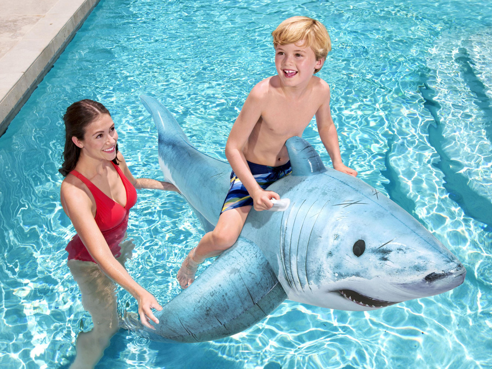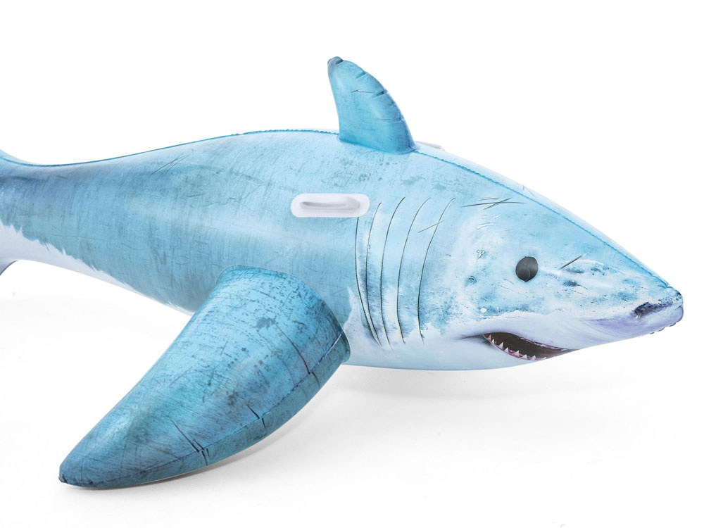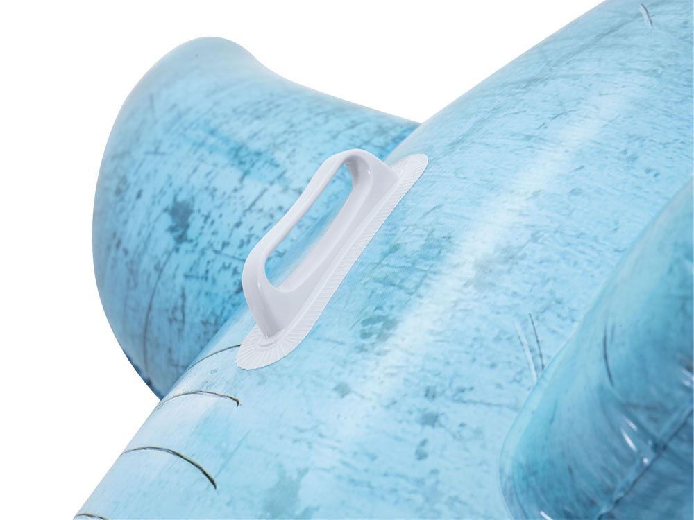 Na zadní straně má dva úchyty pro držení, aby se vaše dítě cítilo v naprostém bezpečí. Držadla lze použít i při přepravě. Díky své velikosti bude žralok vypadat skvěle na pláži i v bazénu.
