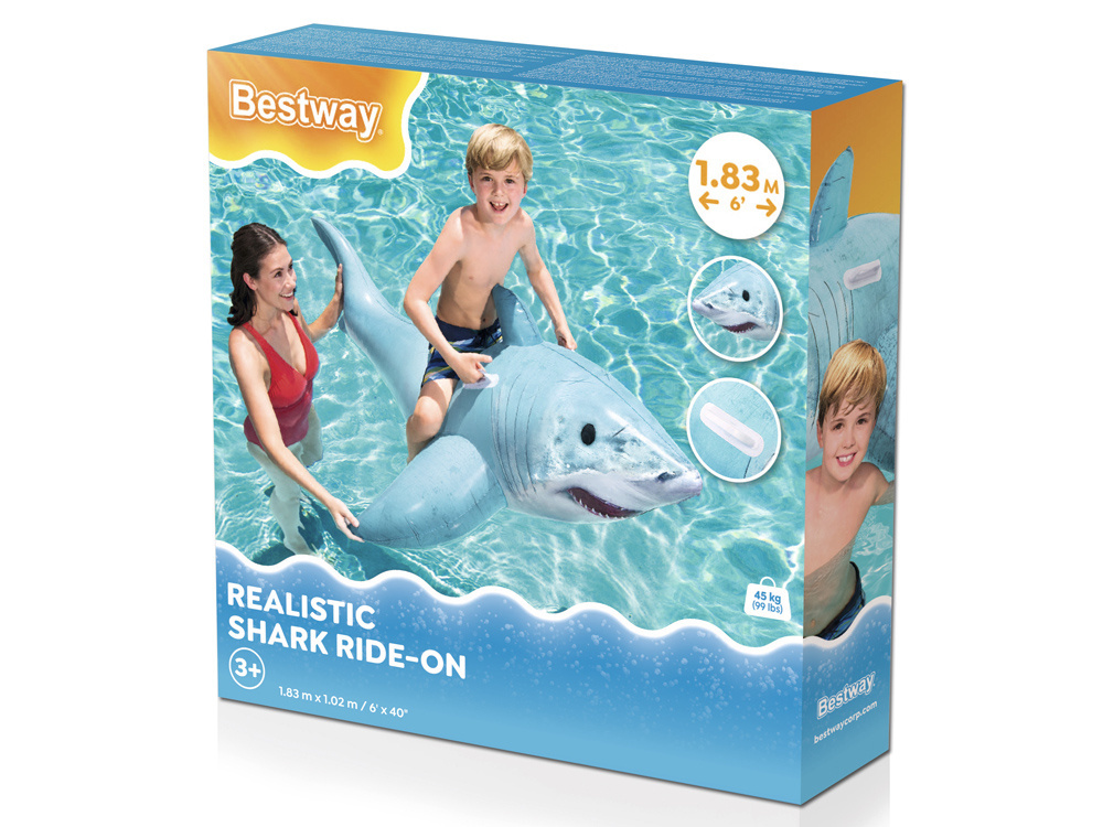 Nafukovací plaveckýžralok je nejnovější nabídkou společnosti Bestway pro letní dobrodružství a senzační vodní zábavu.Jeho nespornou výhodou je velmi realistický vzhled a velikost 183 x 102 cm, která uspokojí každého malého fanouška napínavých dobrodružství. Maximální zatížení je 45 kg.Je vyroben z lehkého, měkkého, ale odolného vinylu.Je stabilní a bezpečná a je určena pro děti již od 3 let.