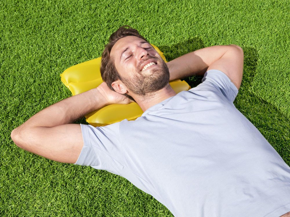Polštář je lehký, nezabírá mnoho místa a k nafouknutí nepotřebuje pumpu, takže si ho můžete vzít kamkoli.