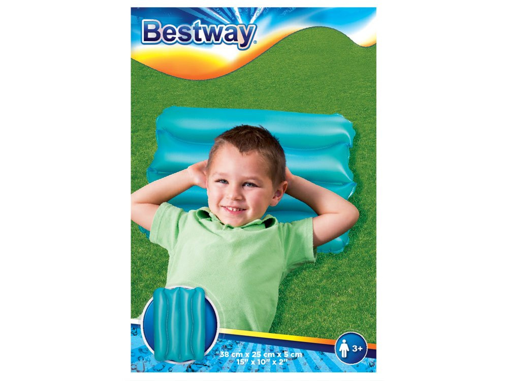 Praktický a pohodlný polštář od společnosti Bestway je ideální pro použití doma, v kempu nebo při cestování autem. Polštář je vyroben z odolného vinylu v pěkné, zářivě modré barvě. Má bezpečnostní ventil, který zabraňuje úniku vzduchu. Pro větší pohodlí jsou na povrchu polštáře speciální drážky. Přes den dobře poslouží jako podložka pod sedadlo a v noci jako polštář na spaní.